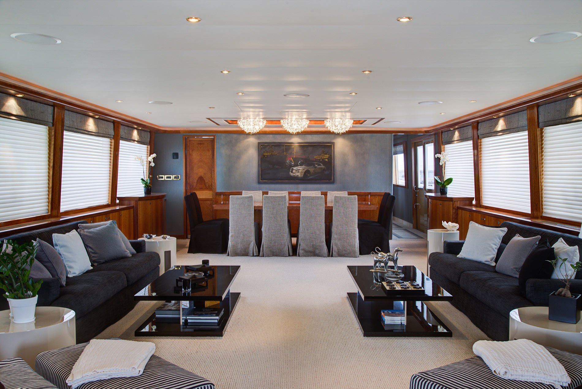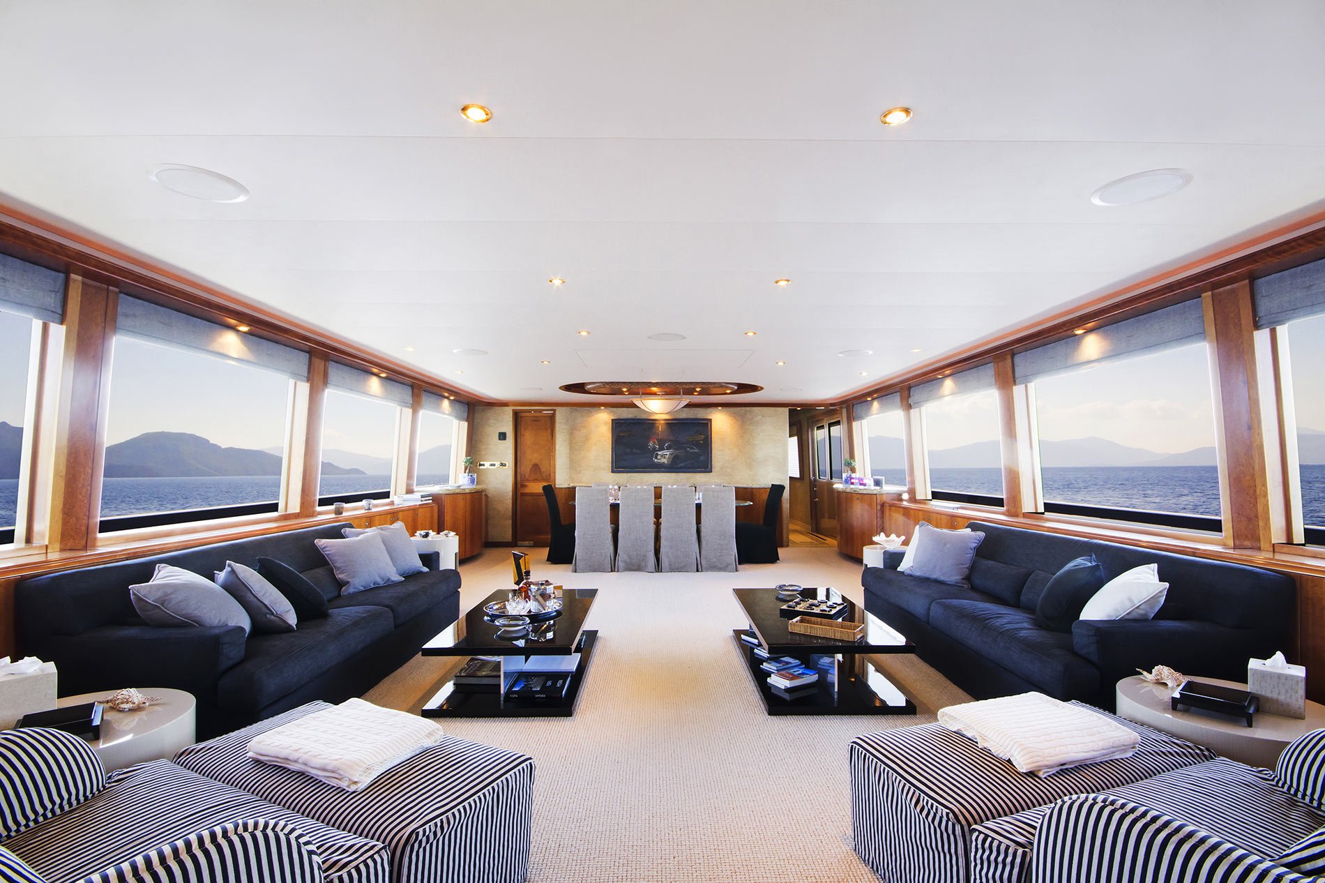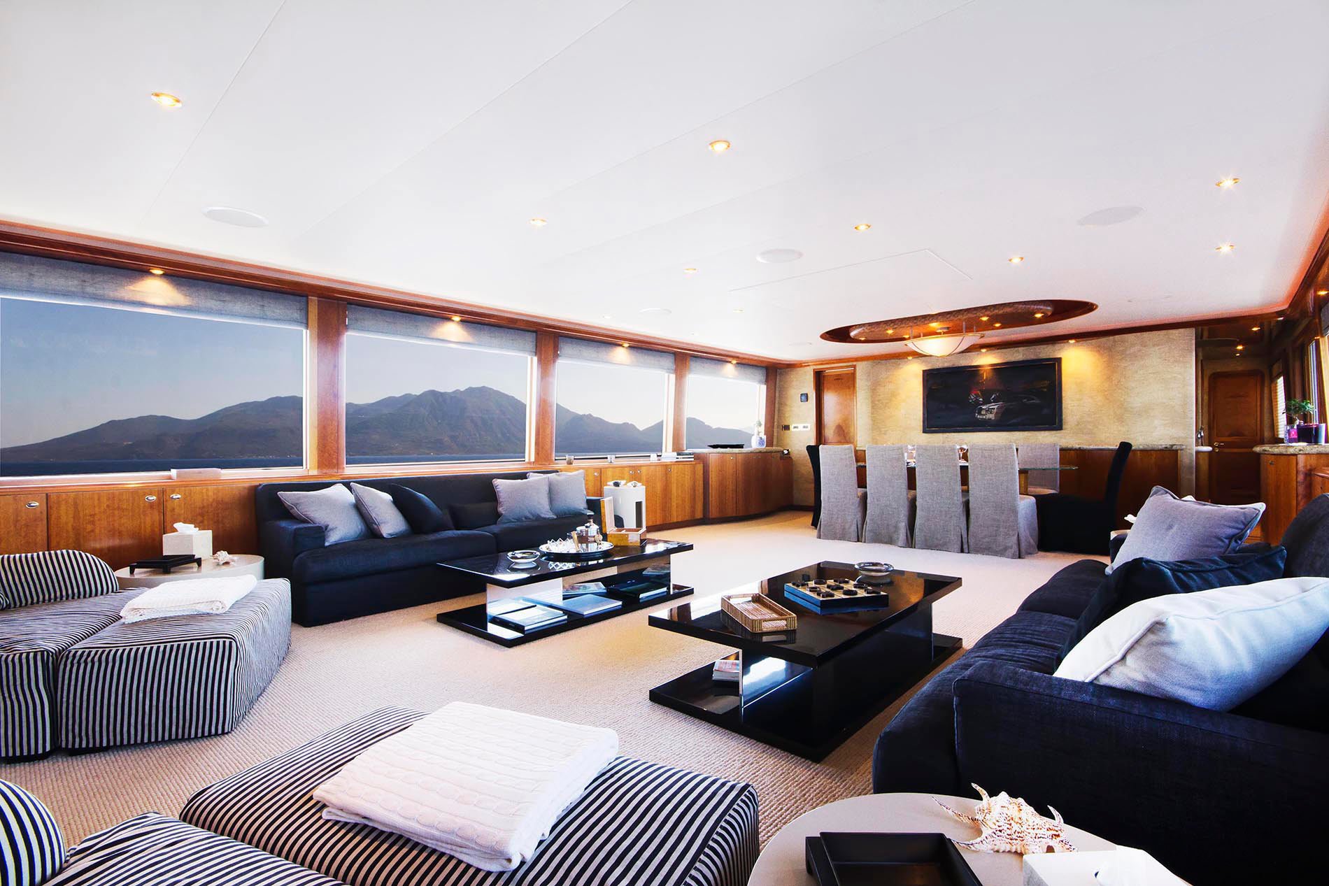 The yacht’s quiet acoustics while cruising are sure to impress along with the panoramic views from the extra large windows of the main salon, sky lounge and master cabin.