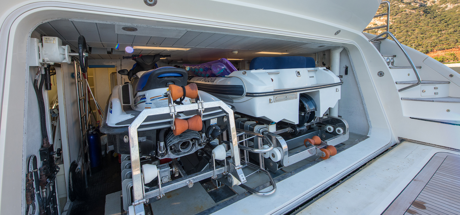A large swim platform and tender garage house a full complement of water toys, ensuring every journey is as active or tranquil as desired.