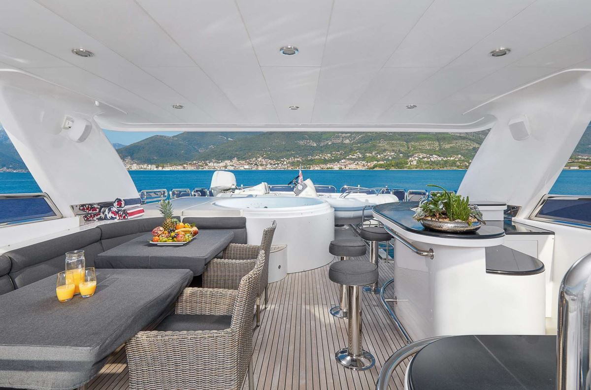 A charter on Annabel II is comfortable and convenient thanks to the provided amenities including a deck jacuzzi, perfect to enjoy the scenery with your favourite drink in hand.