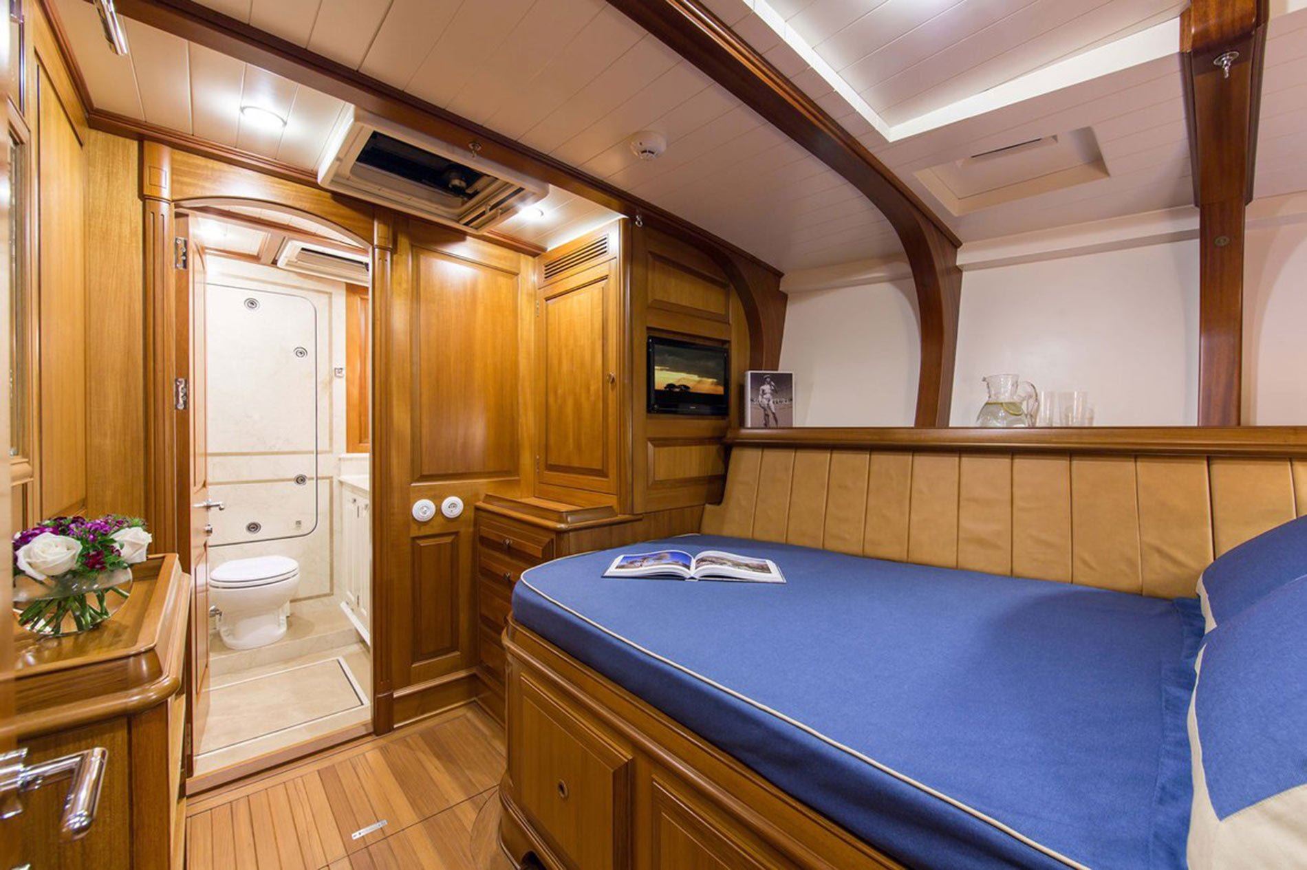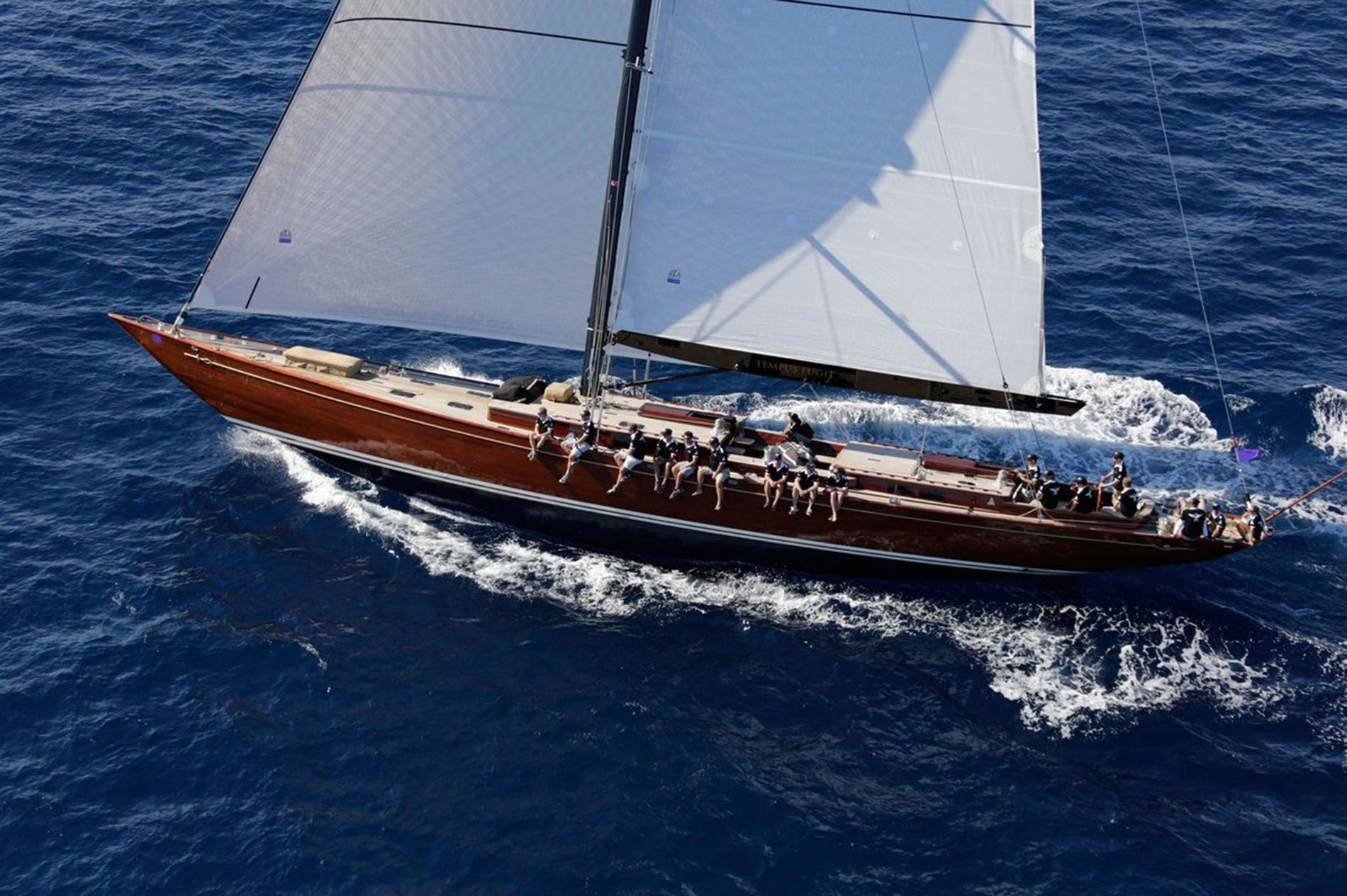 Built by Arkin Pruva Yachts in Antalya, Turkey, the 90-foot sailing yacht Tempus Fugit is a majestic J-Class inspired classic sloop, launched in 2013. Penned by renowned Rob Humphreys, superyacht Tempus Fugit mixes up the tradition of craftsmanship with today’s high end technology. Tempus Fugit’s interior layout sleeps up to 6 guests in 3 rooms, including a master suite, and 2 double cabins. She is also capable of carrying up to 3 crew onboard to ensure a relaxed luxury yacht experience. Timeless styling, beautiful furnishings and sumptuous seating feature throughout to create an elegant and comfortable atmosphere.
