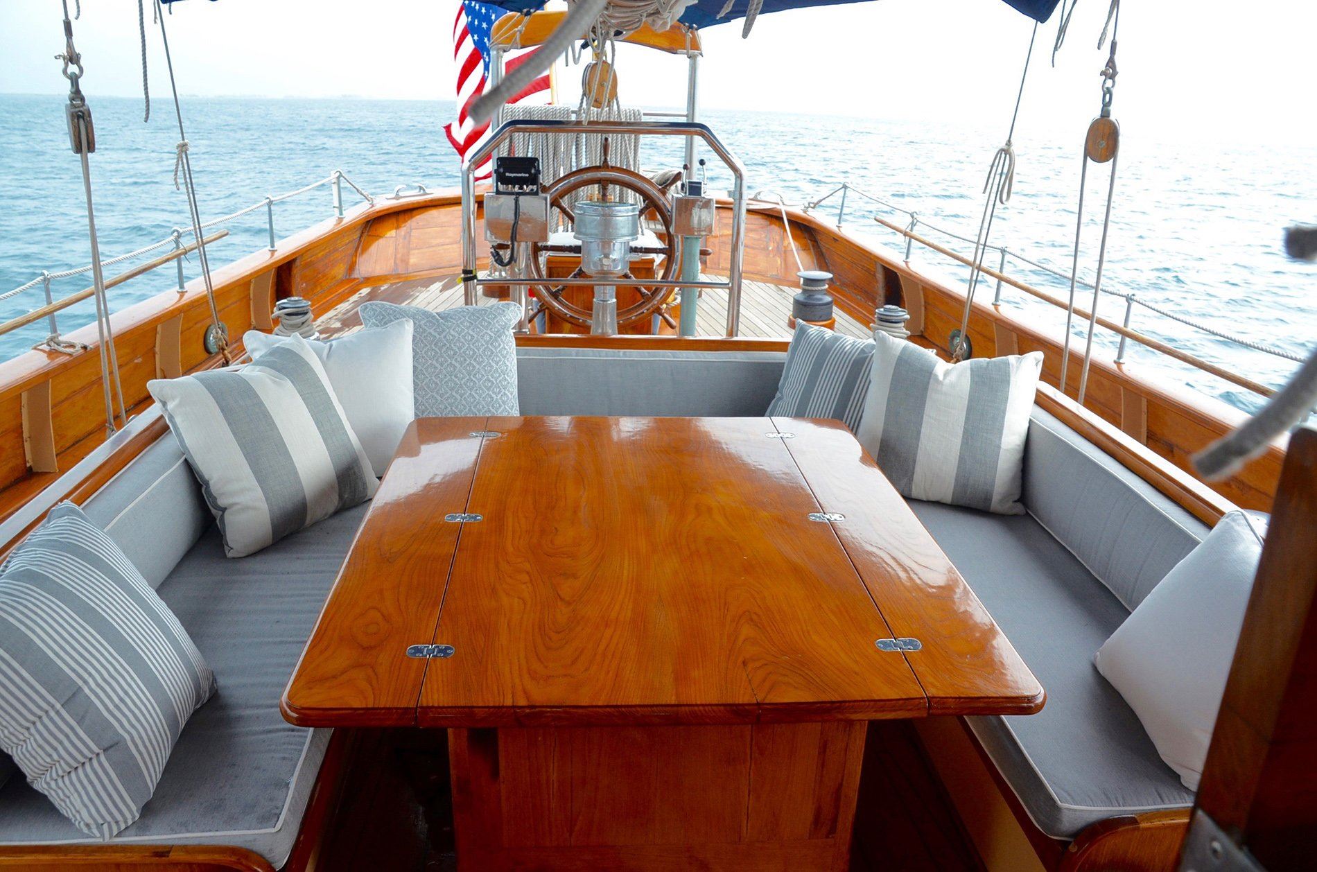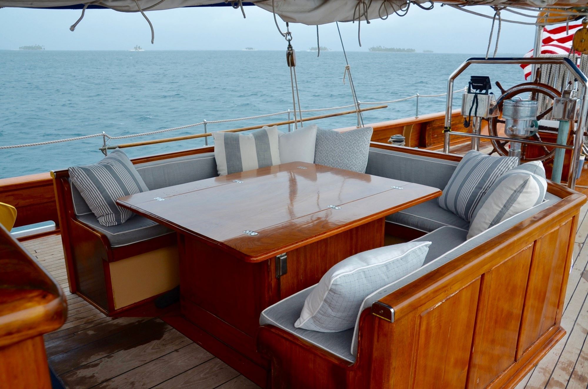 The professional crew of five includes a very experienced Captain and gourmet chef. Guests can swing in a hammock sipping a tropical drink, swim to the beach, or take the helm and help hoist the sails if you wish.