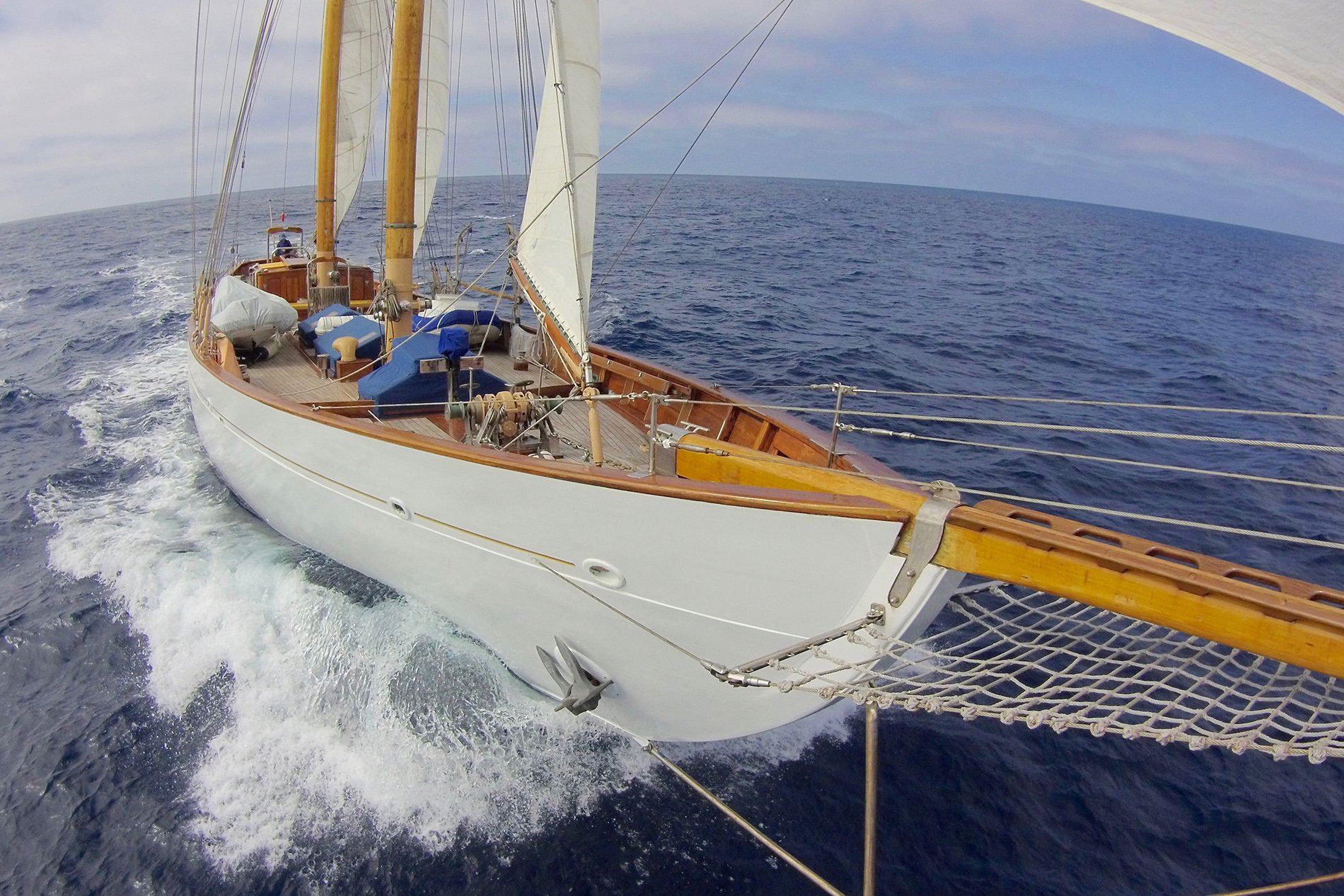 Schooner ‘EROS’ is a classic beauty built in England in 1939 for the daughter and son-in-law of a British Lord. She was very soon after commandeered by the Royal Navy to participate in the famous evacuation at Dunkirk. After the war she became the private yacht of the first man internationally known as a billionaire, Stavros Niarchos, and she became well known in the Mediterranean yachting community. Her present owners acquired her in 1992 and have just completed a museum quality restoration, no expenses spared! ‘EROS’ comfortably accommodates up to eight guests in four double cabins. The usual toys are aboard for amusing oneself when at anchor: small boats suitable for sailing, paddling or skiing, snorkeling gear and dive boat, plasma TV, piano, hammocks – the list goes on!