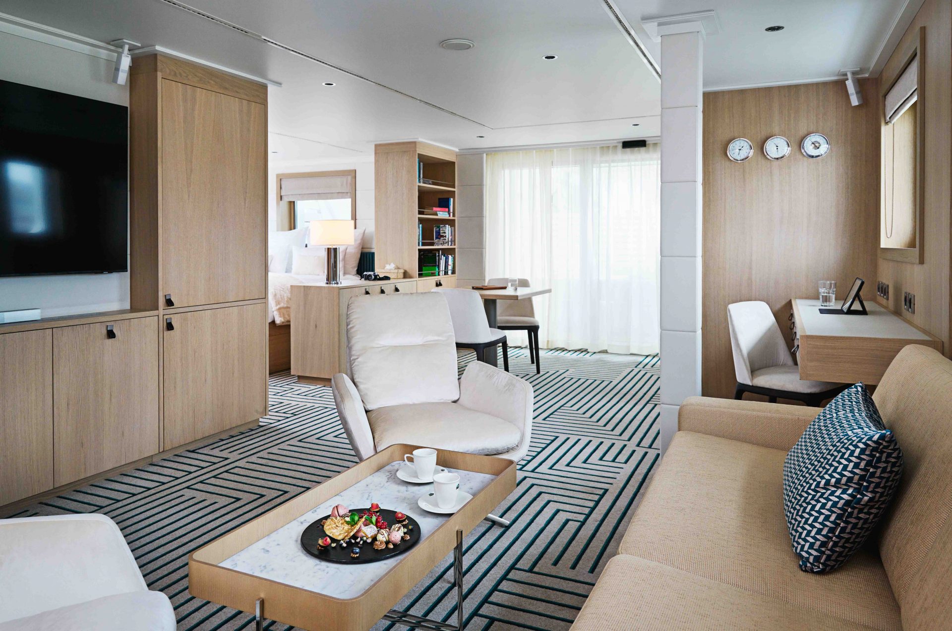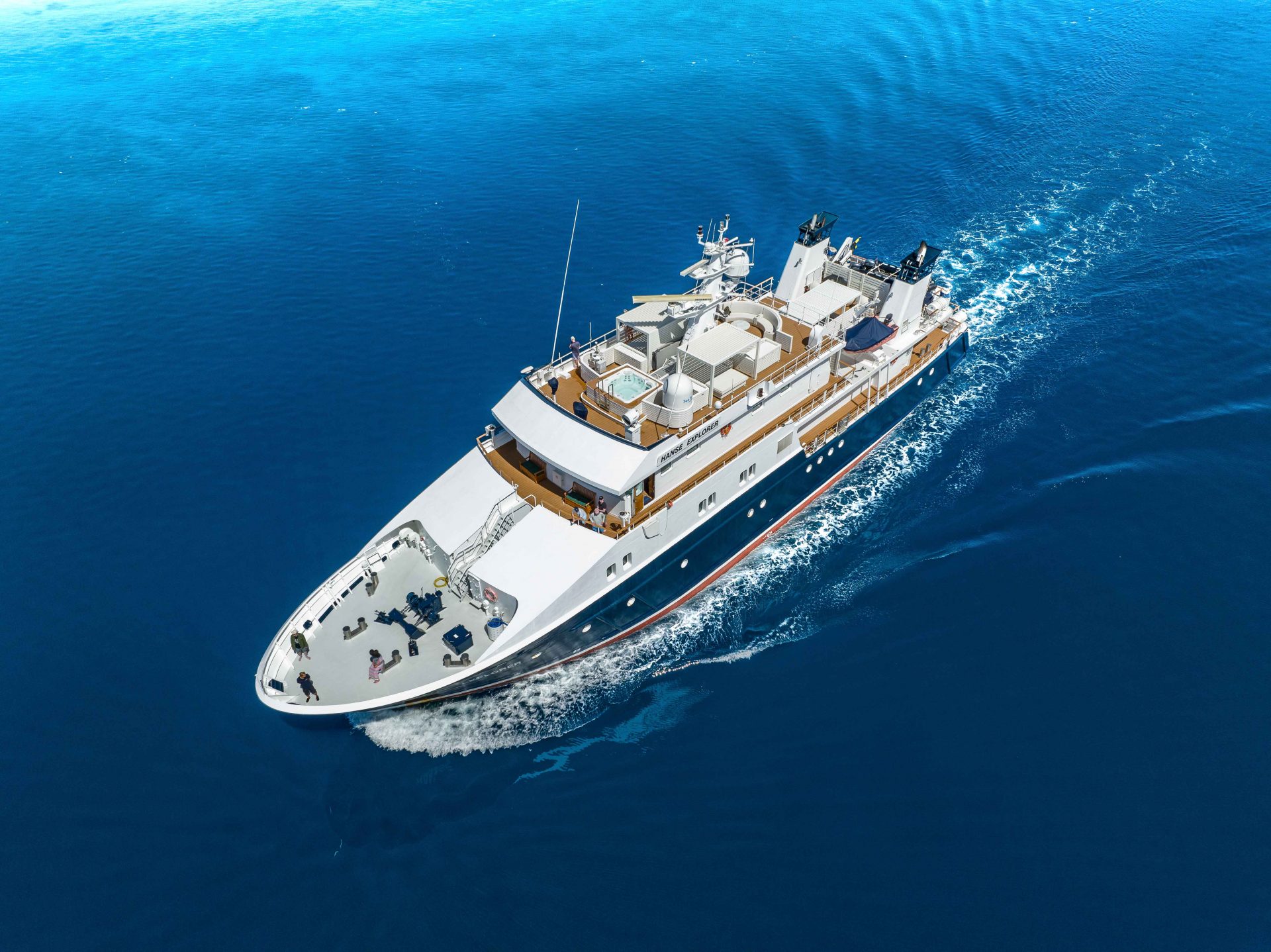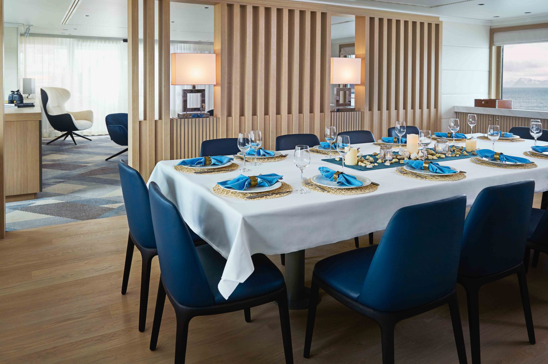Hanse Explorer can accommodate up to 12 guests across 7 en suite cabins. The expansive master cabin, 485 sq ft, is situated on the Upper Deck and features a large private lounge area. The remaining 6 ensuite cabins, all roughly 182 sq ft, are situated on the Main Deck and can be configured for either double or twin sleeping arrangements.