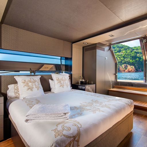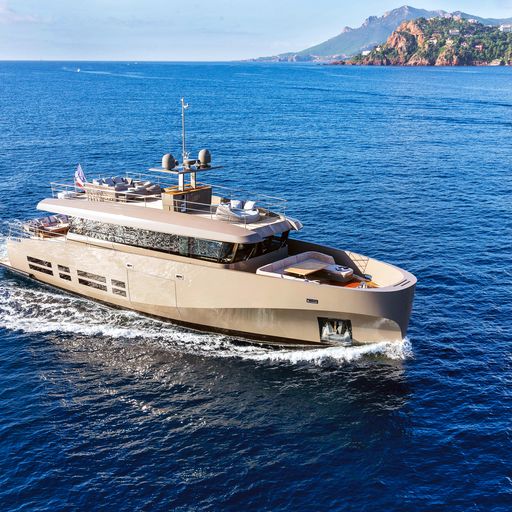 26.2m Kokonut's Wally innovative and unique design blends exceptional volumes with over 280m2 living space. With 2 master cabins with open aft to the "sea terrace" swimming platform, a large beam including tender garage and vast deck areas, Kokonut's Wally is more than 30- larger than the other yachts of this size.