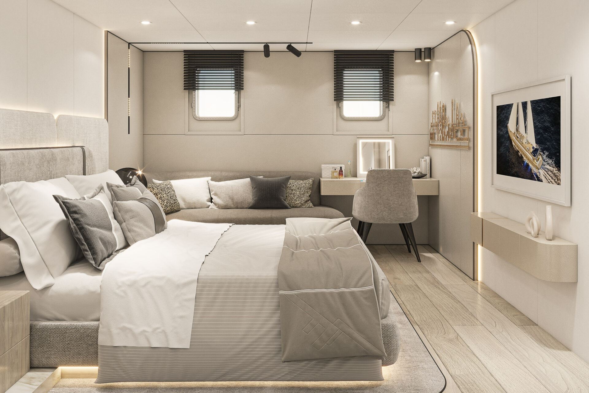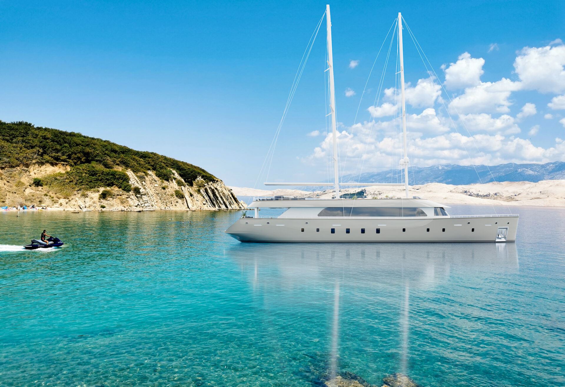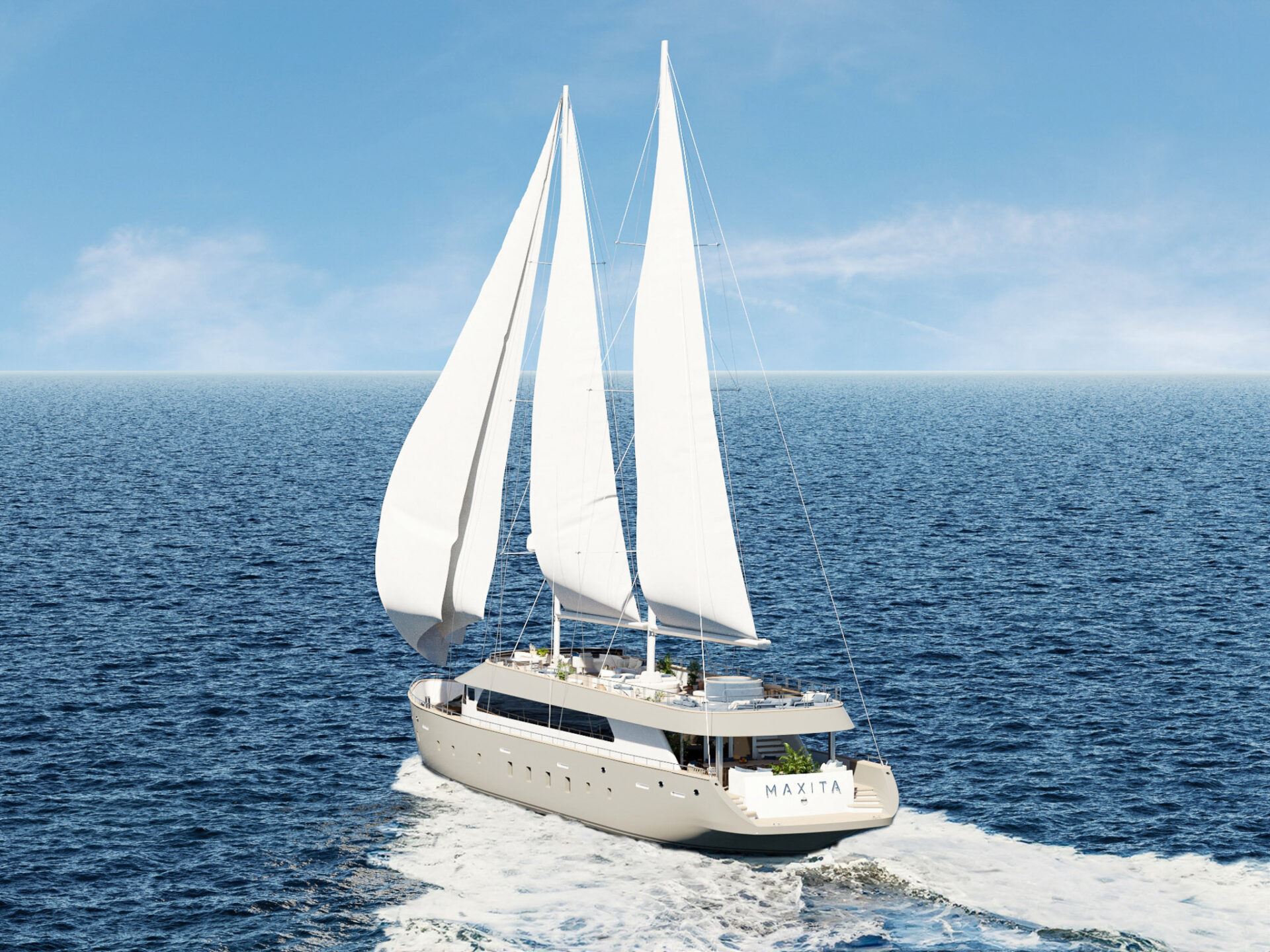 Introducing Sailing Yacht Maxita: a luxurious and modern yacht offering spacious cabins, a stunning sundeck, thrilling water toys, and exquisite Mediterranean cuisine. Yacht Maxita embodies elegant luxury and is set to sail in 2024. Featuring a master, a VIP, and four convertible (double or twin) ensuite cabins, the yacht’s modern, bright, and airy decor provides a high-end hotel ambiance. Yacht Maxita accommodates up to 12 guests and is serviced by a crew of 7 dedicated members, ensuring an unparalleled experience with plenty of exciting water activities.