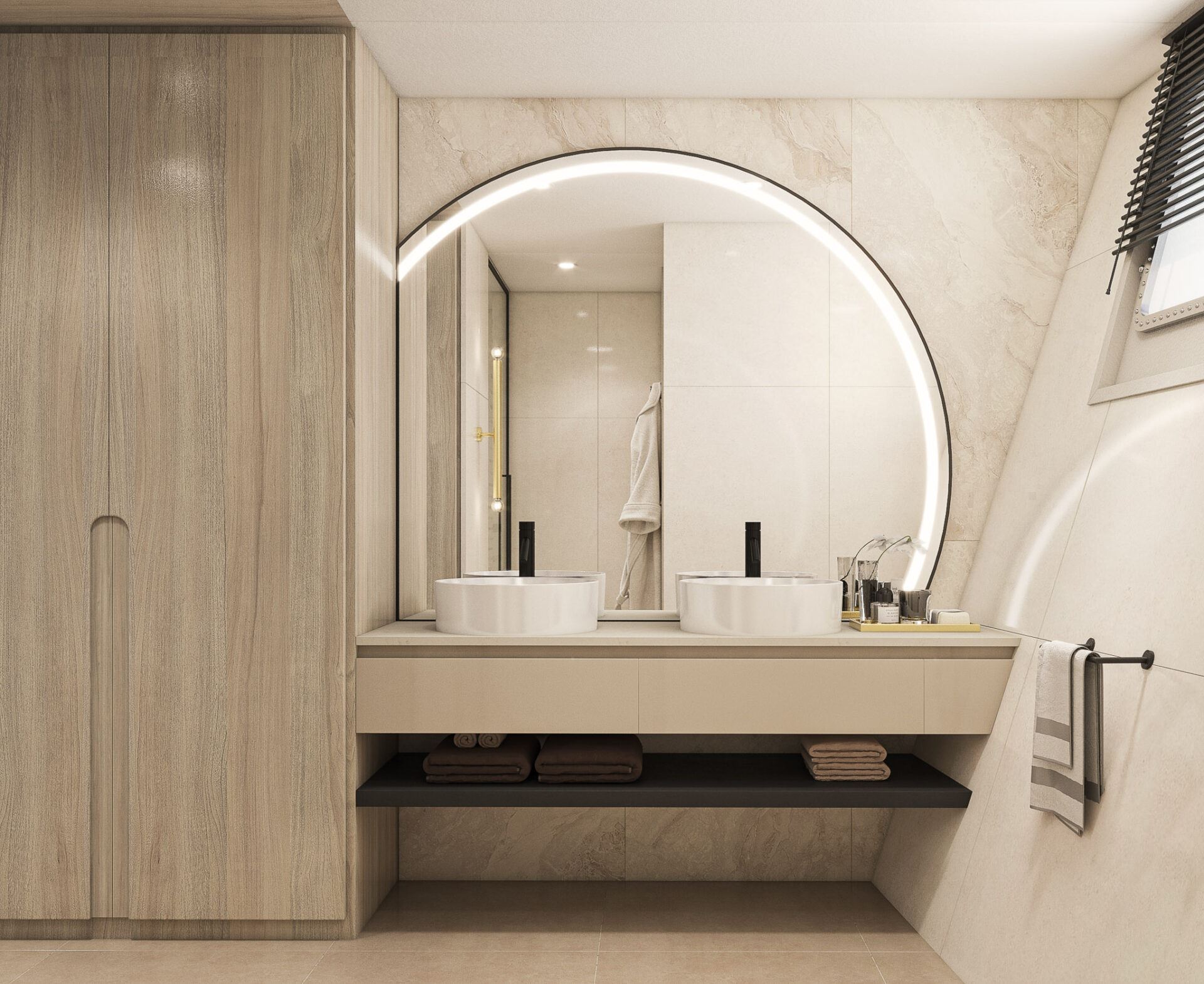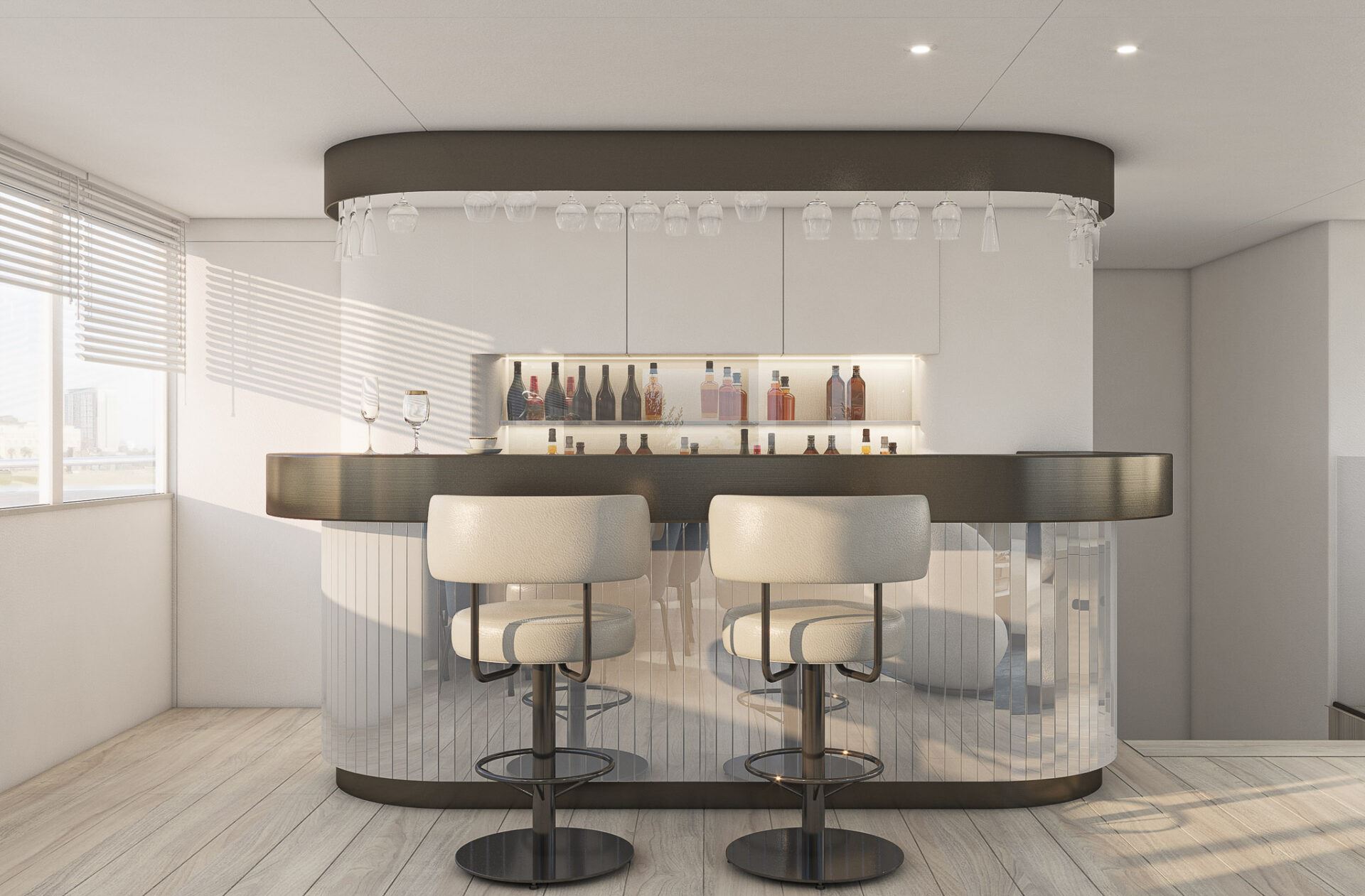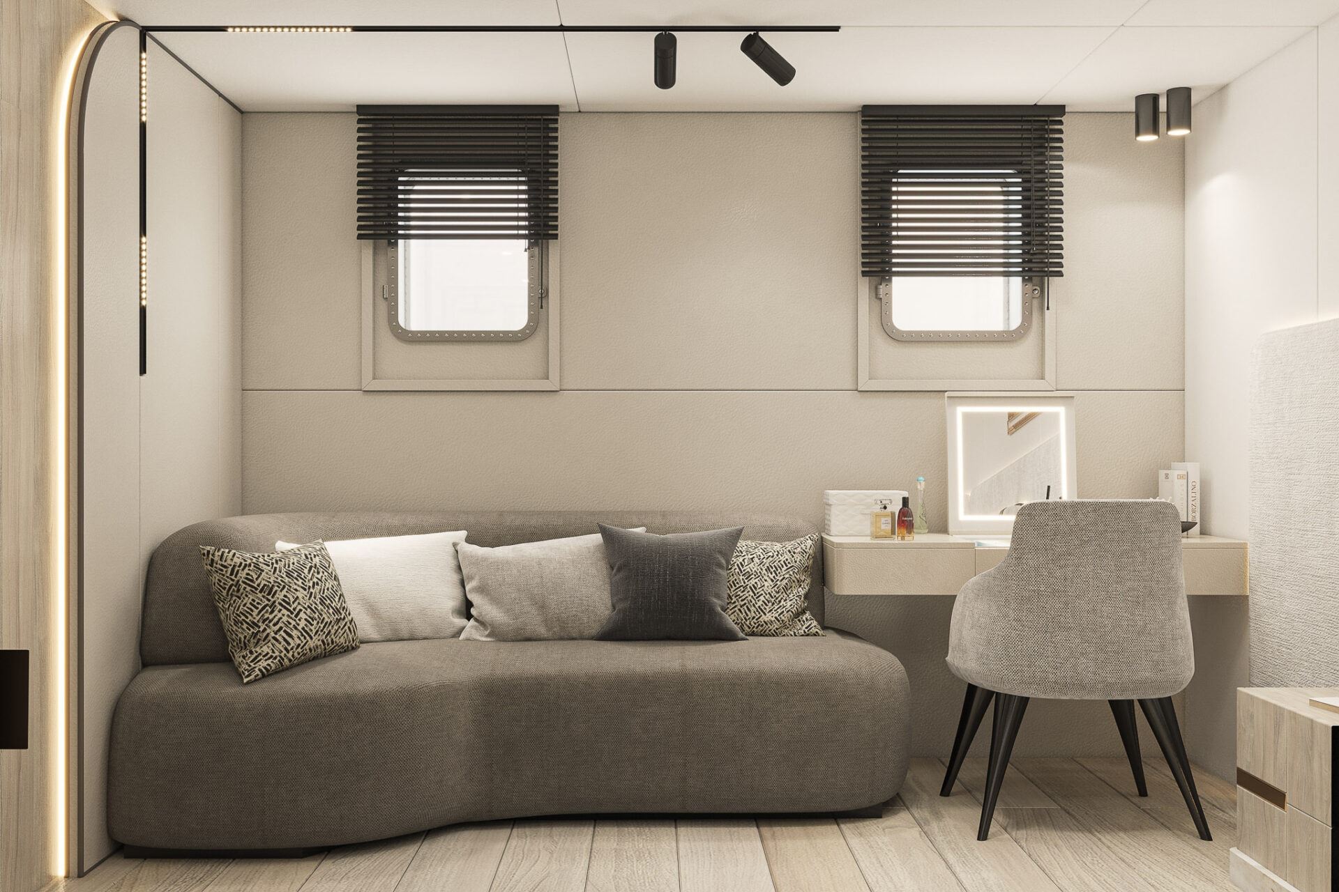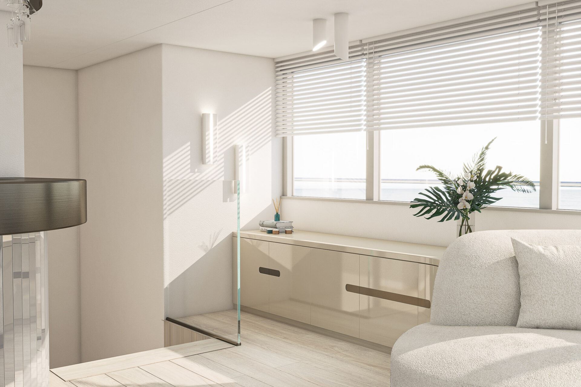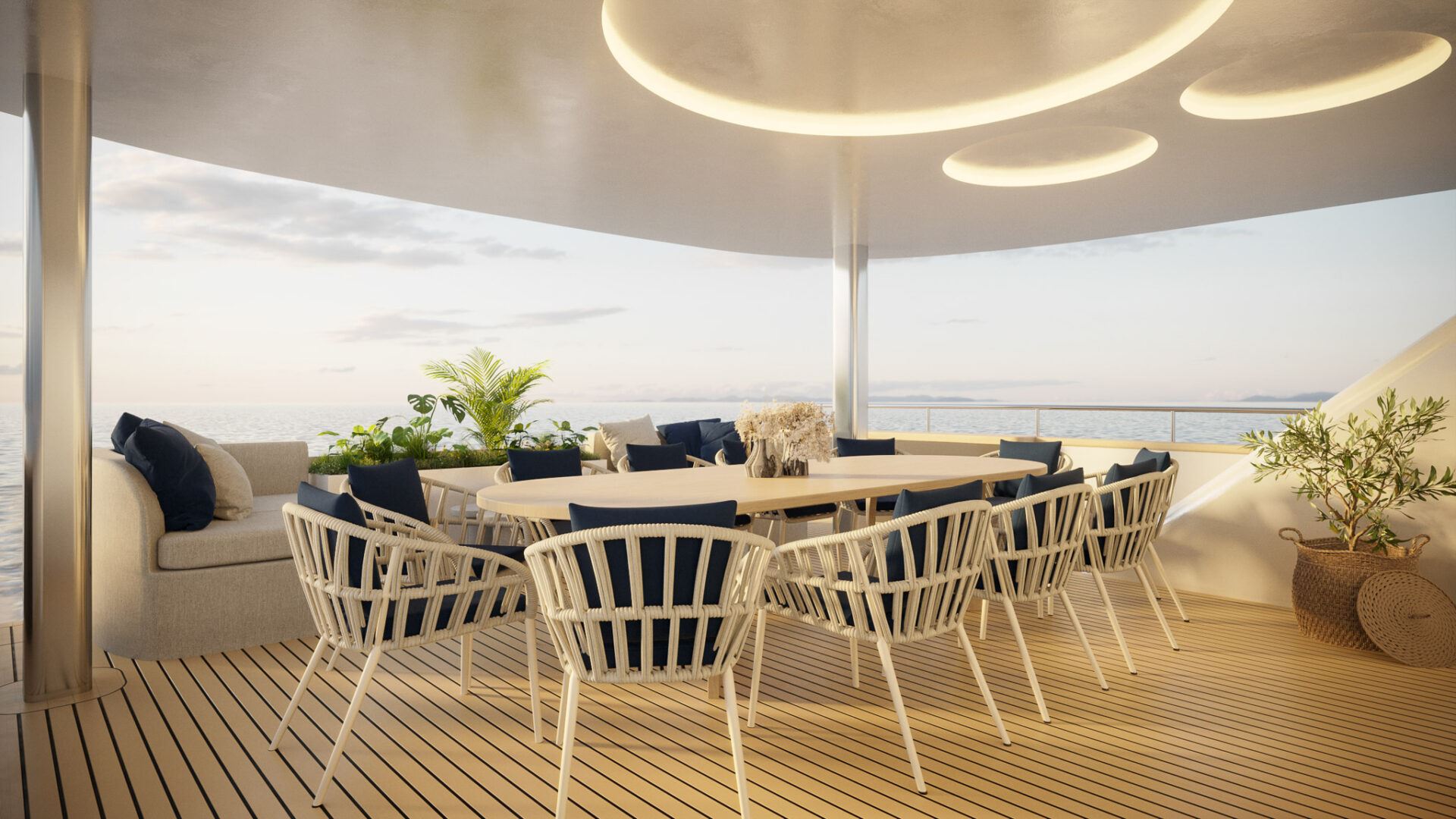 Inside, he elegant and modern salon of Yacht Maxita creates a relaxed environment perfect for recharging and socialising. Guests can dine at the large dining table, lounge on the white oval sofa, or enjoy a beverage at the fully stocked bar. The smartly designed spacious sundeck includes an open-air cinema, BBQ, another bar, jacuzzi, and several lounging areas. An additional dining table on the sundeck allows guests to savor delicious meals while enjoying breathtaking nearby scenery.