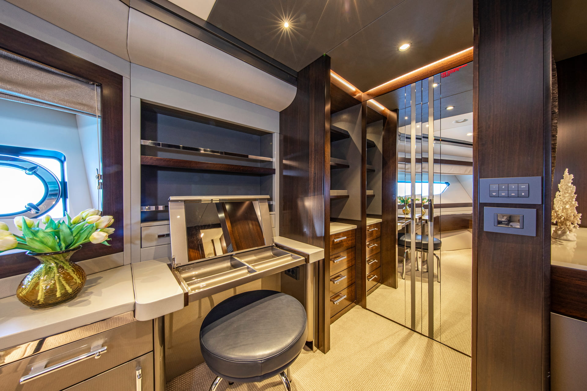 Her exterior boasts impressive lines and a sleek hardtop roof, while her powerful engines propel her to speeds of up to 28 knots.