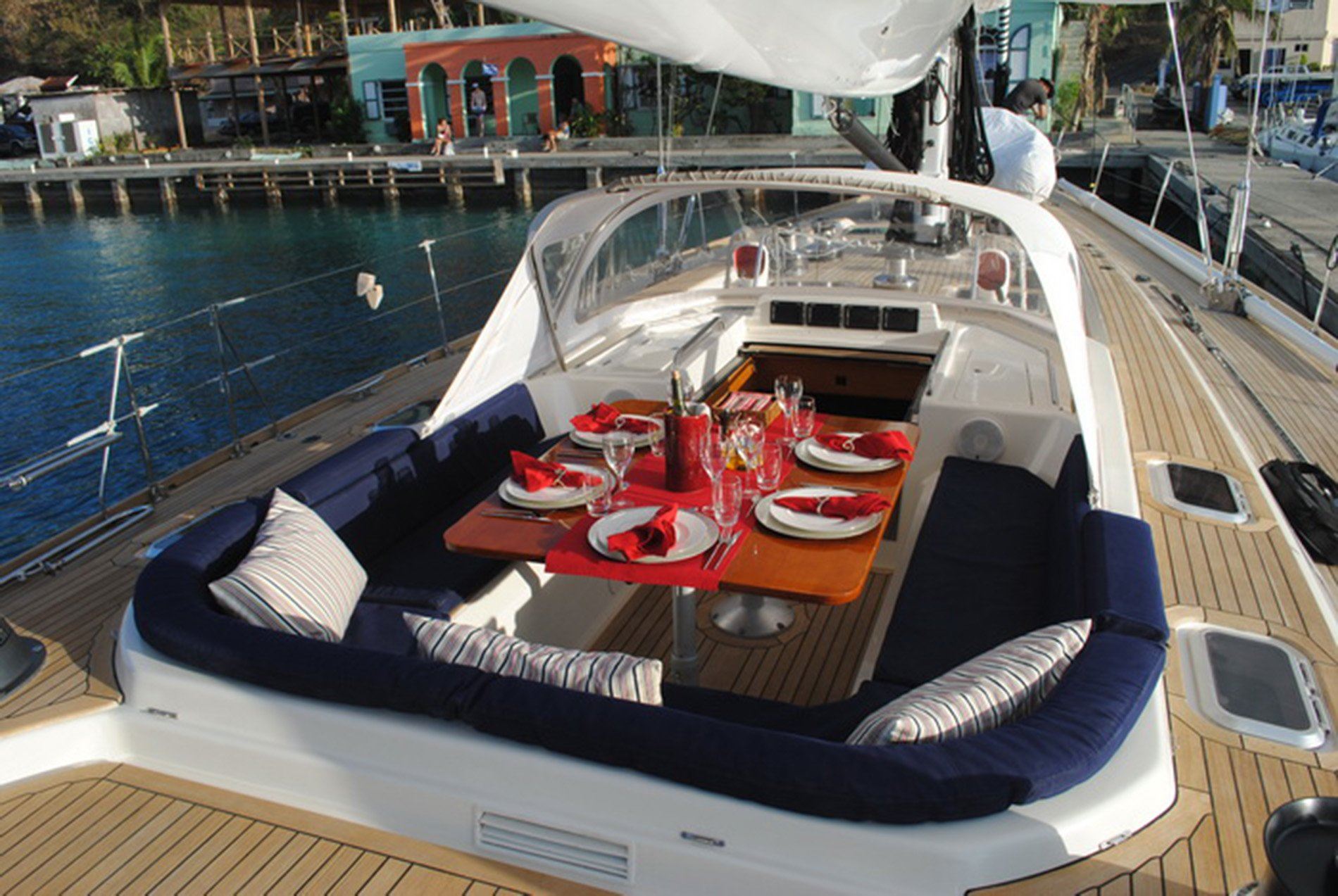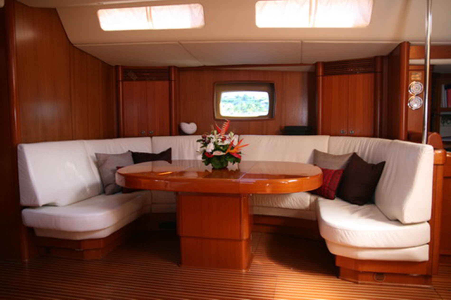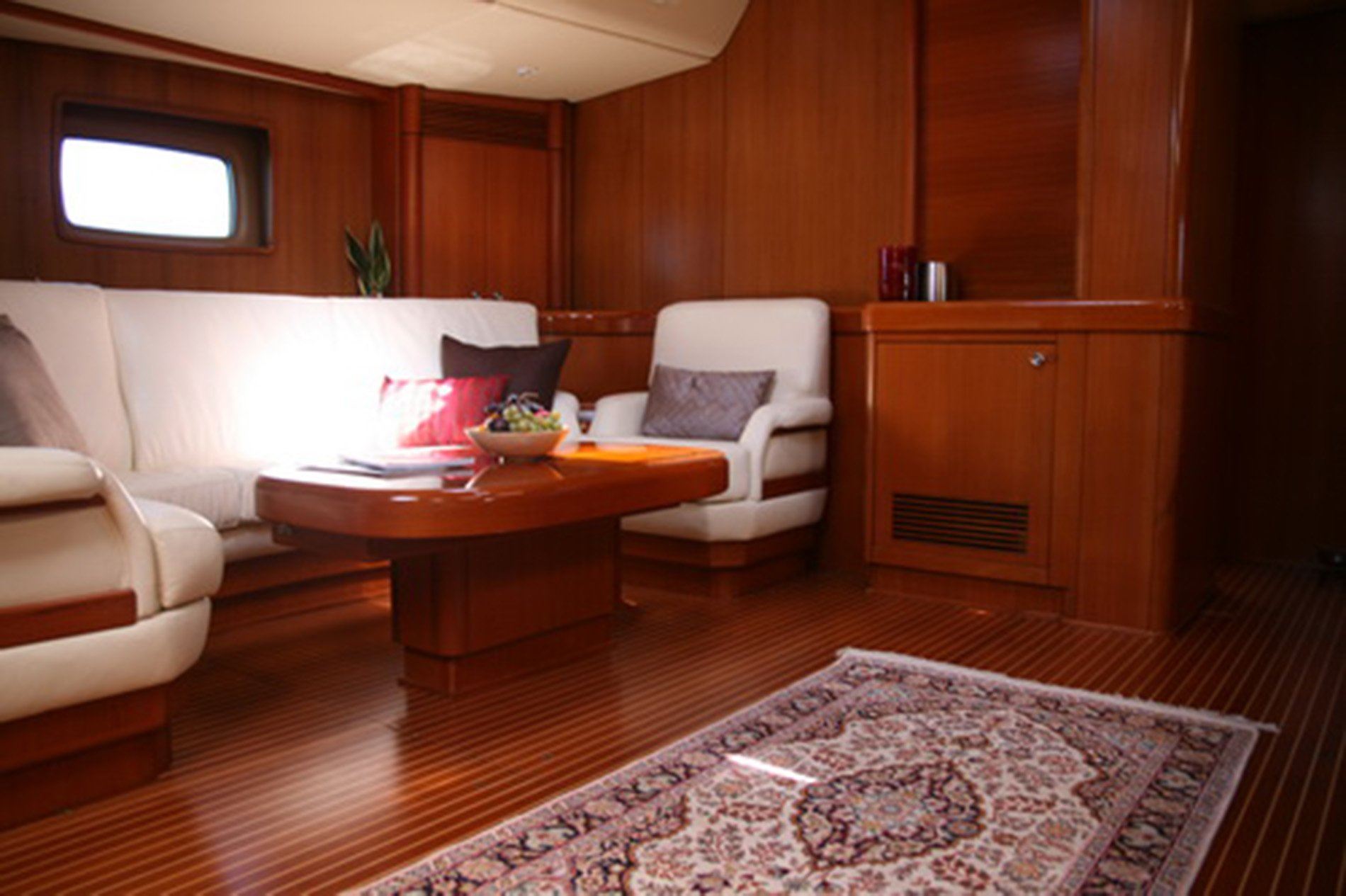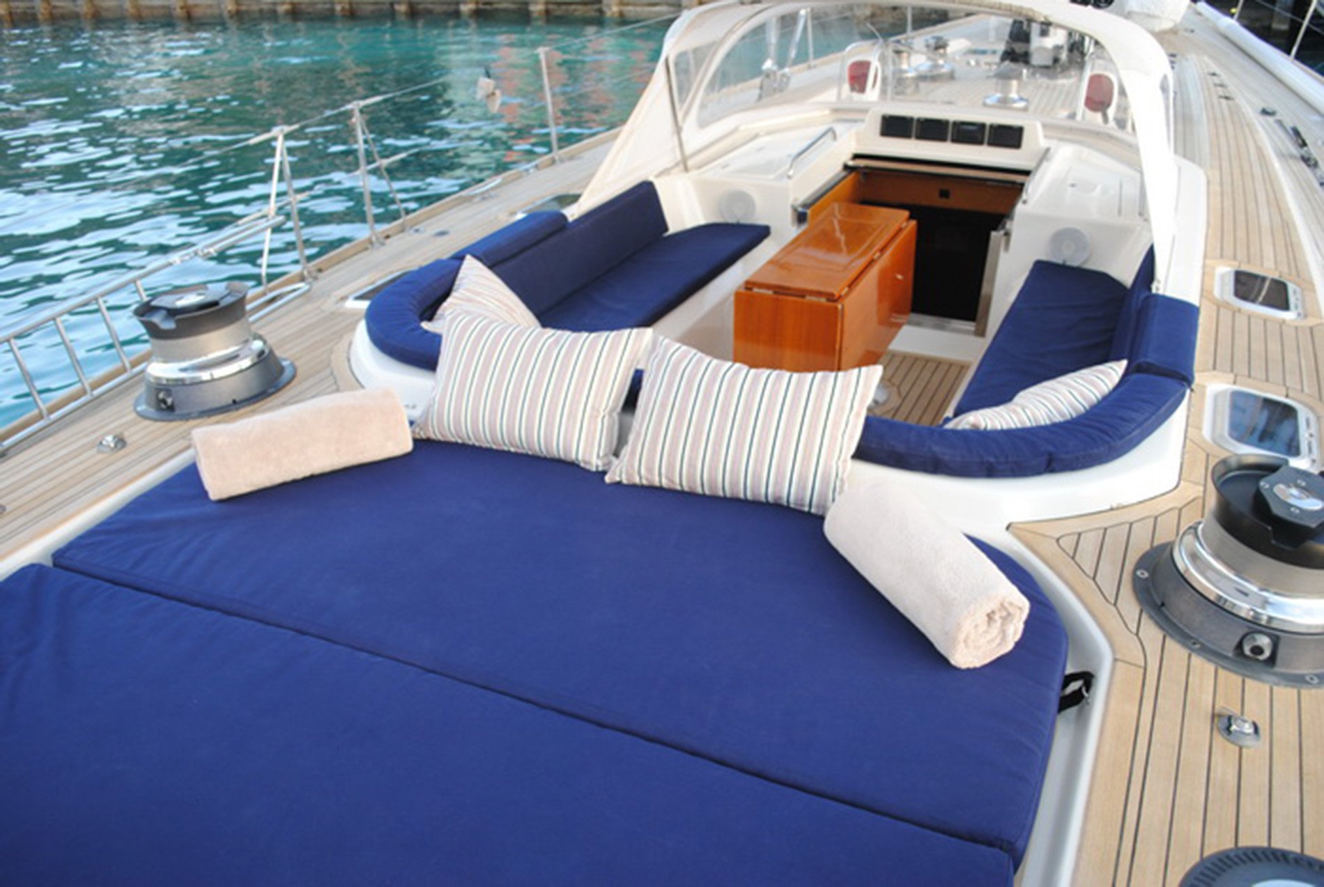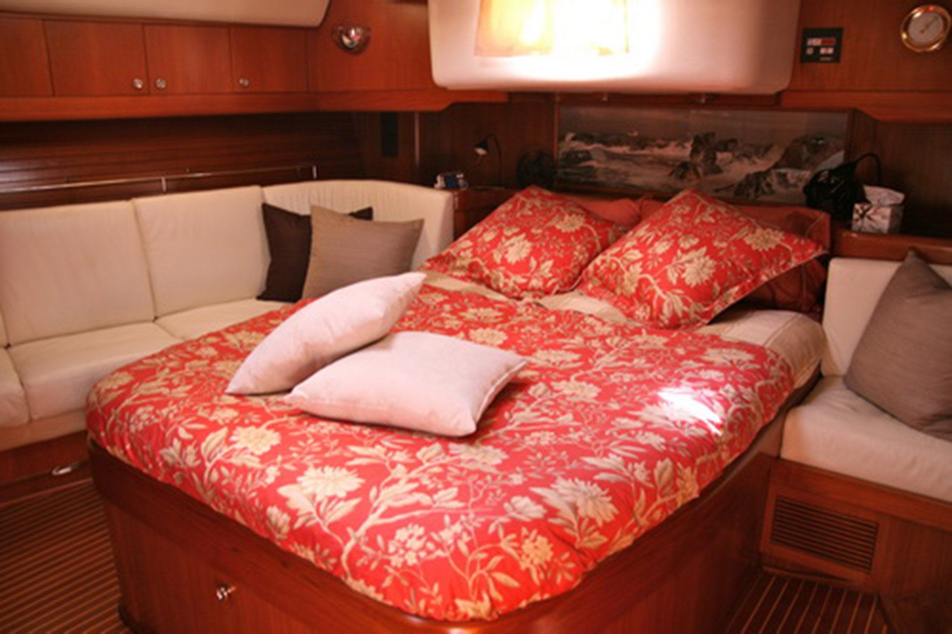 La Forza Del Destino is a beautiful example of the elegance of the Swan 77. She represents the ultimate in luxury with a full body and massive interior volume that provides accommodations normally found on larger vessels. In addition to the full width Master Stateroom there are 2 portside en suite guest cabins with one lower double and one pullman each. One is aft of the main salon, the other forward. All cabins have walk-in showers.