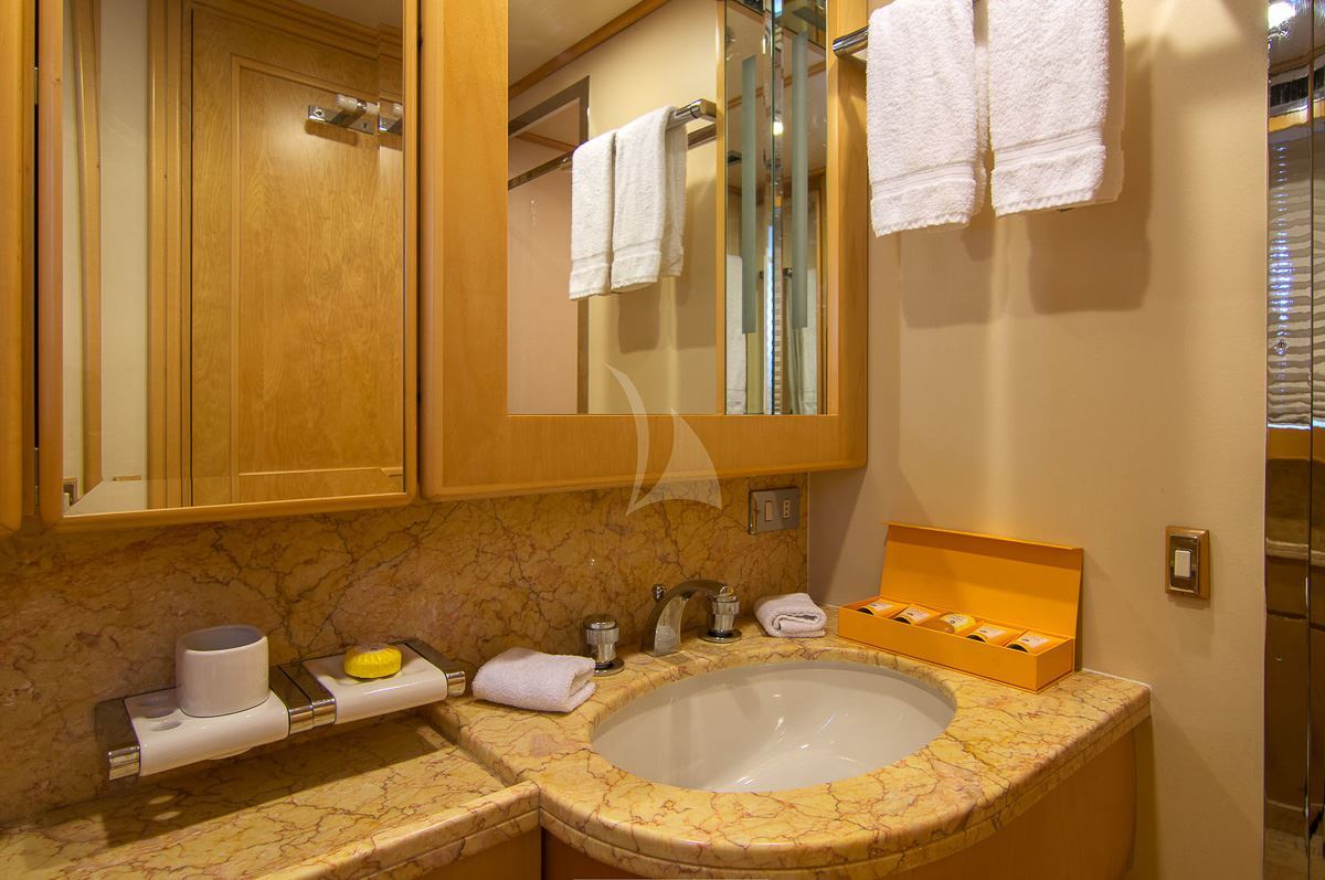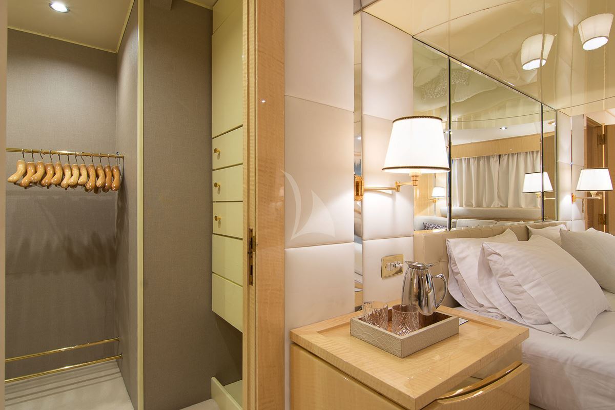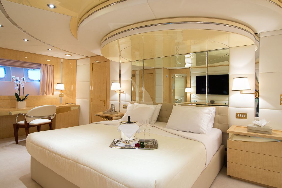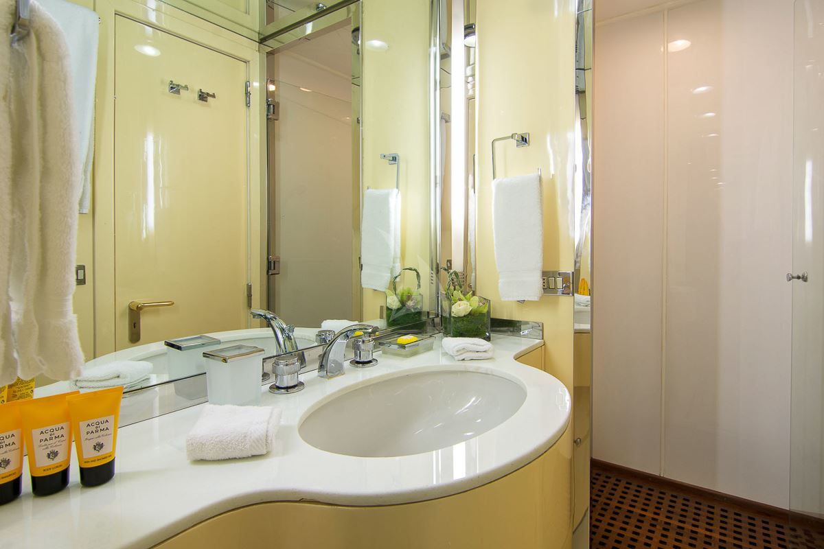 O'Natalina offers guest accommodation for up to 12 guests in 7 suites comprising a master suite, two VIP cabins, two double cabins and two cabins that can operate as twins or doubles. The bed configuration includes 2 king, 3 doubles and 4 singles. She is also capable of carrying up to 12 crew onboard to ensure a relaxed luxury yacht charter experience.