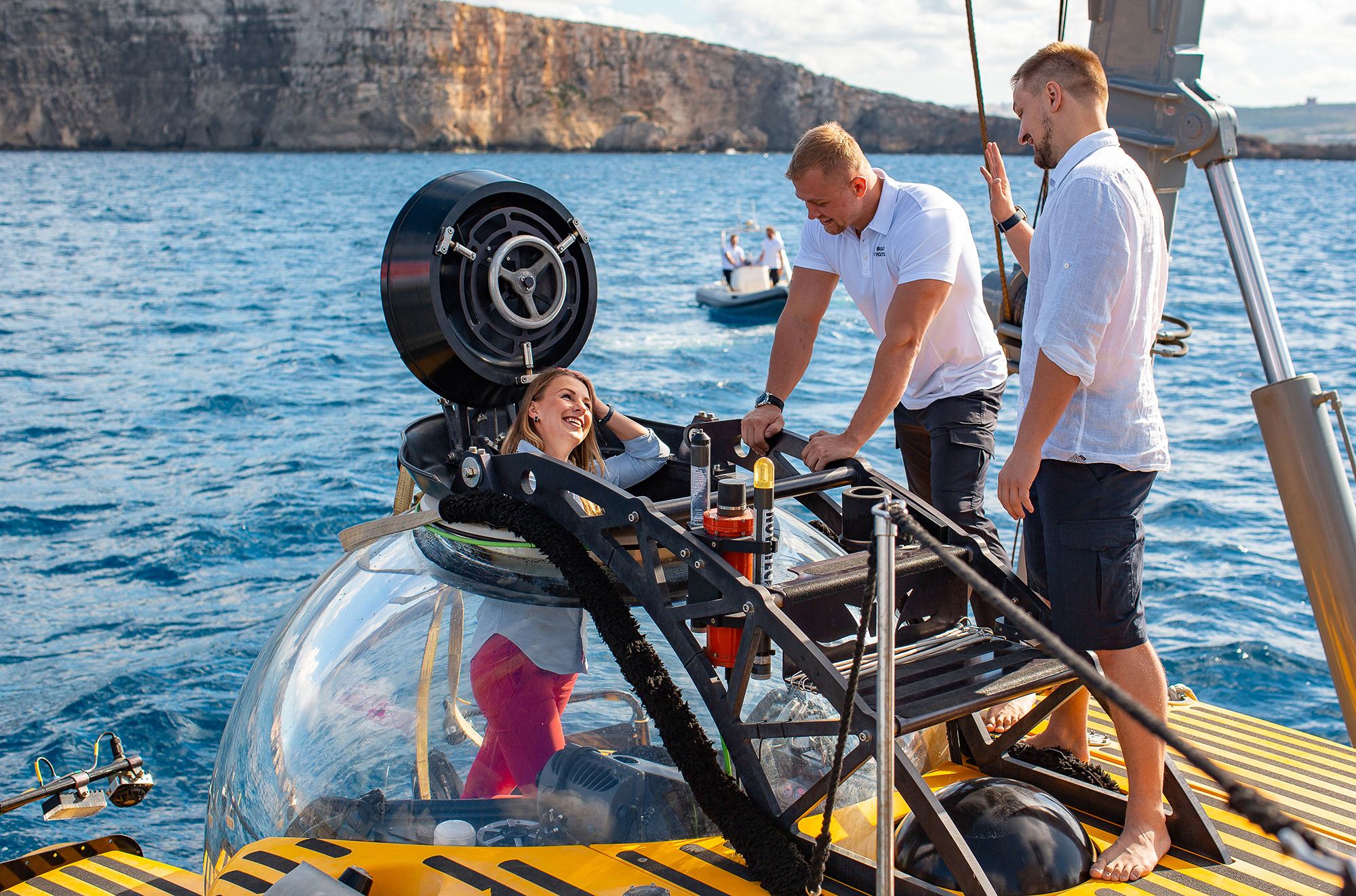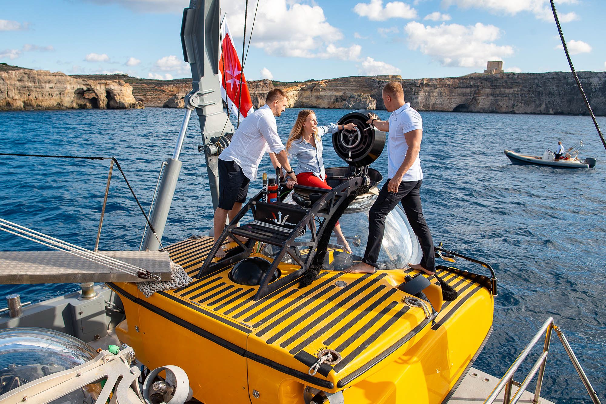 U Boat has a bespoke Triton 3300/3 3-person submersible, operated by a trained submersible pilot, that is capable of diving to depths of up to 1000m below the surface. Your safety is our priority. That is why the crew also deploy a second support submersible, a Triton 3300/1 operated by our second trained pilot, to ensure a safe dive.