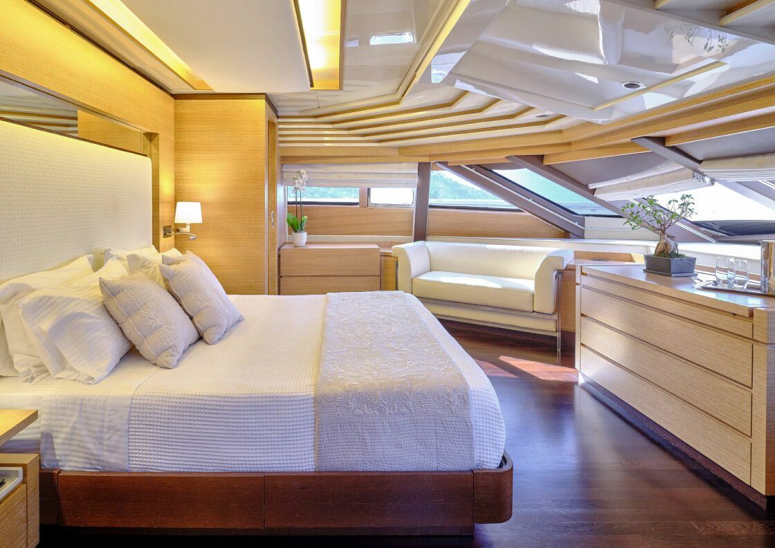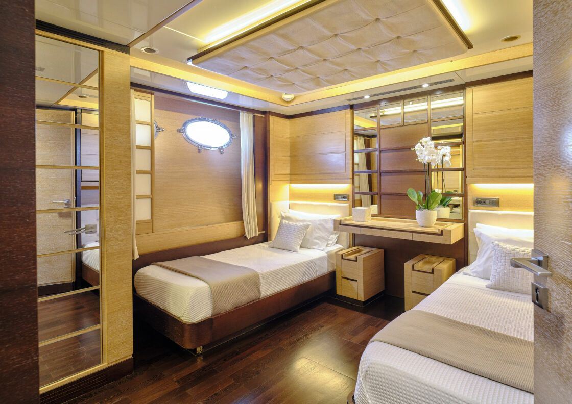 With flexible accommodation for up to 12 guests across five exquisite cabins, Rini provides the ultimate comfort. The master suite, VIP cabin, double cabin, and two twin cabins ensure everyone finds their personal haven on board. Her child-friendly setup caters to families, making this an ideal escape for all ages.