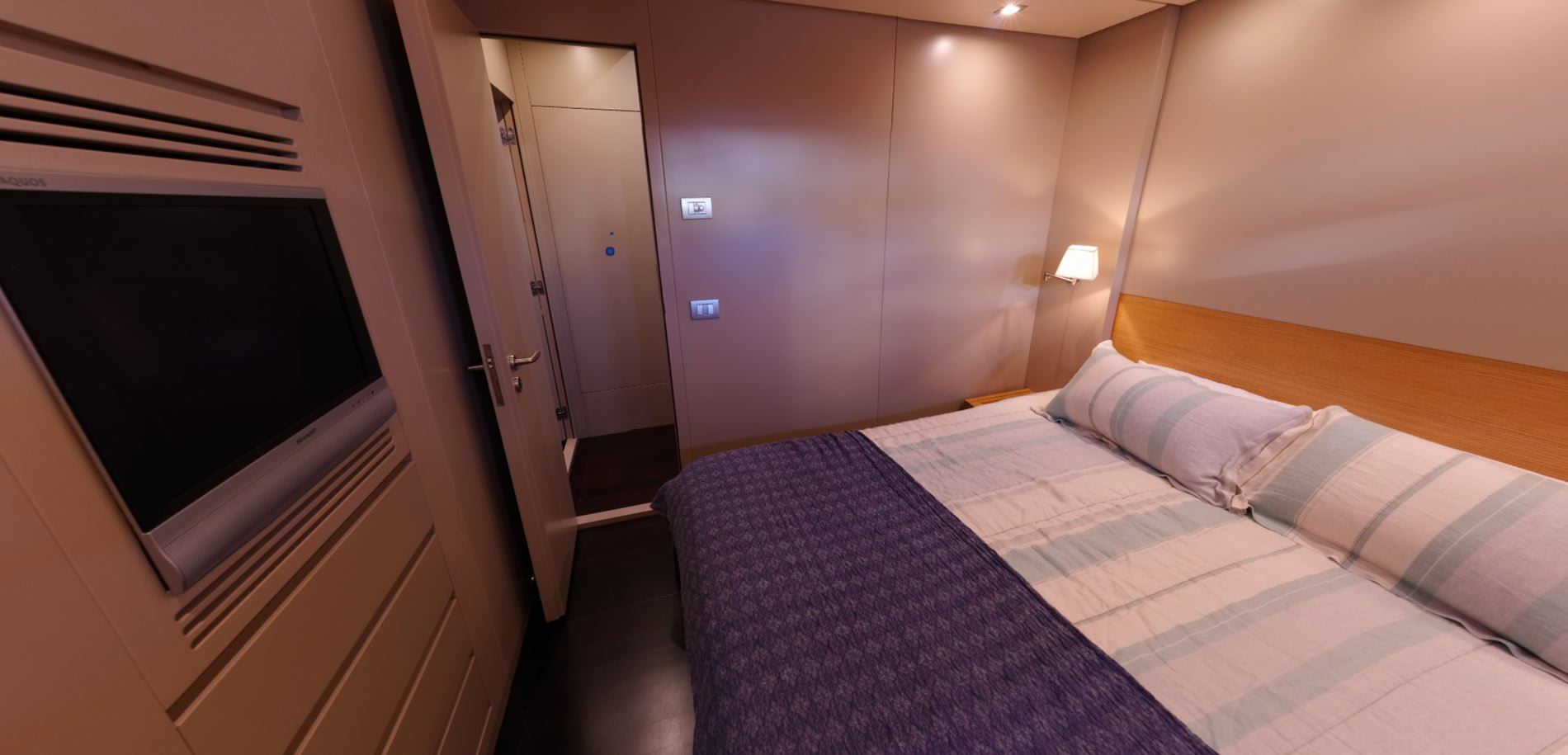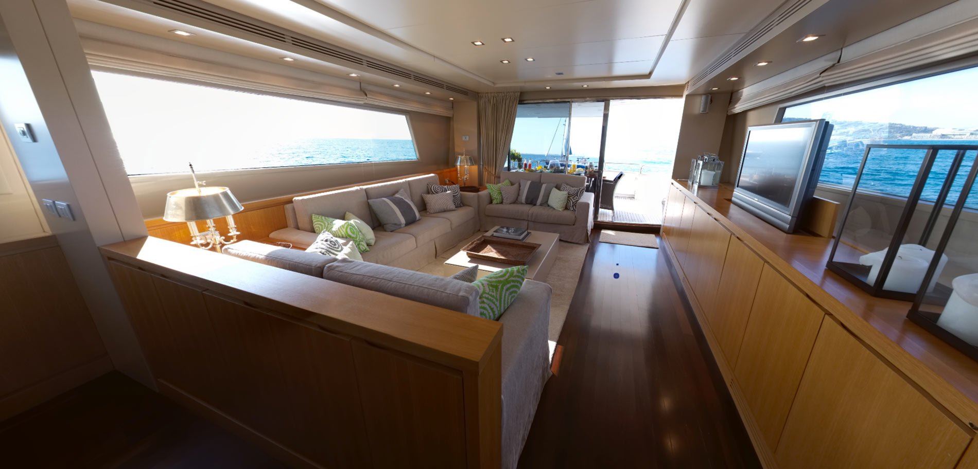 Her practical layout coupled with a light, fresh interior by Della Role design creates a relaxing environment to enjoy with family and friends. Both the interior and the exterior benefit from social, comfortable seating and dining options. The main salon boasts a large tv with a u-shaped sofa arrangement, with a formal dining area further forward.