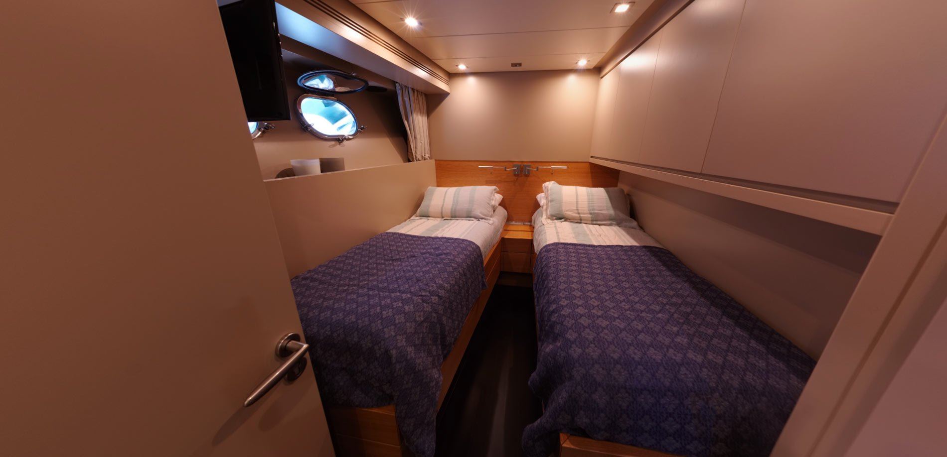 Down below the cabins are bright and benefit from their own ensuite bathrooms.