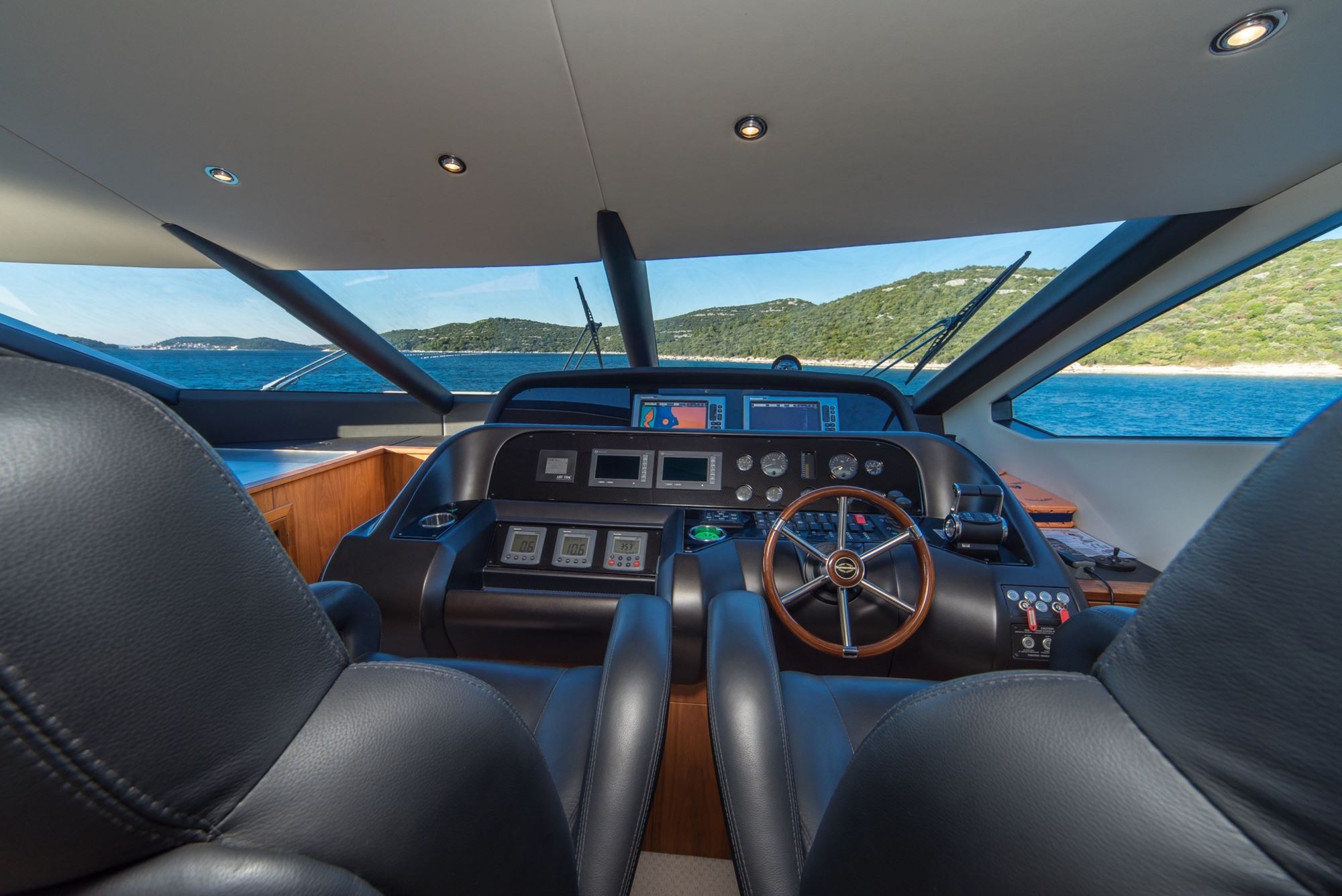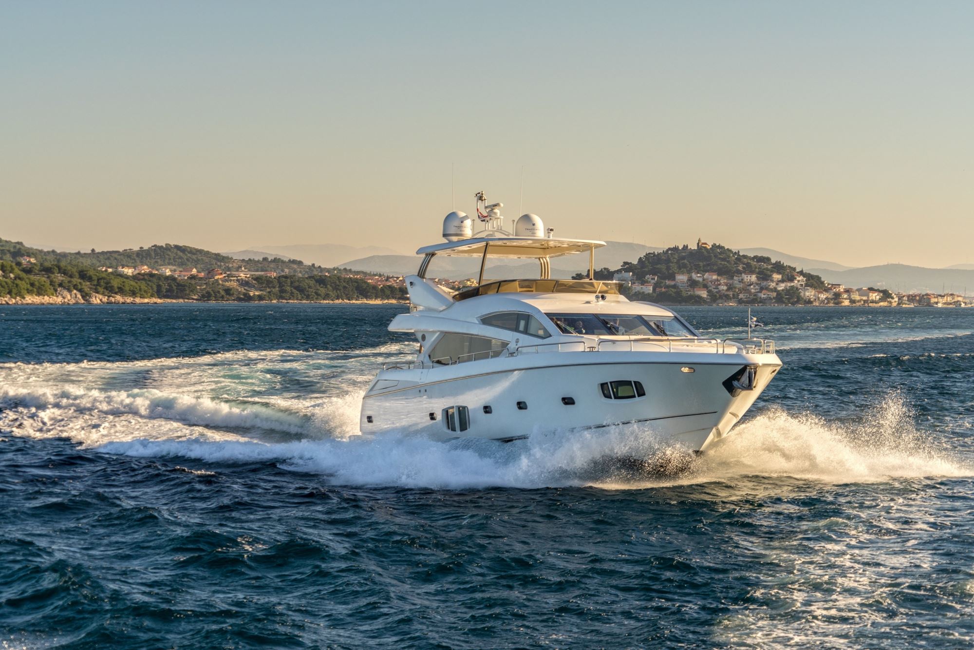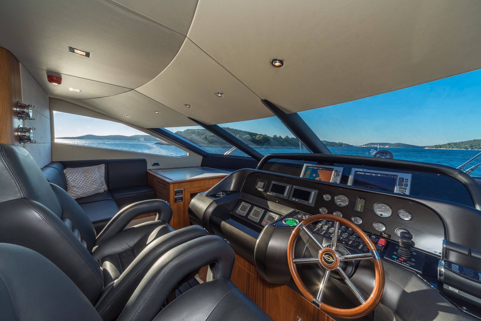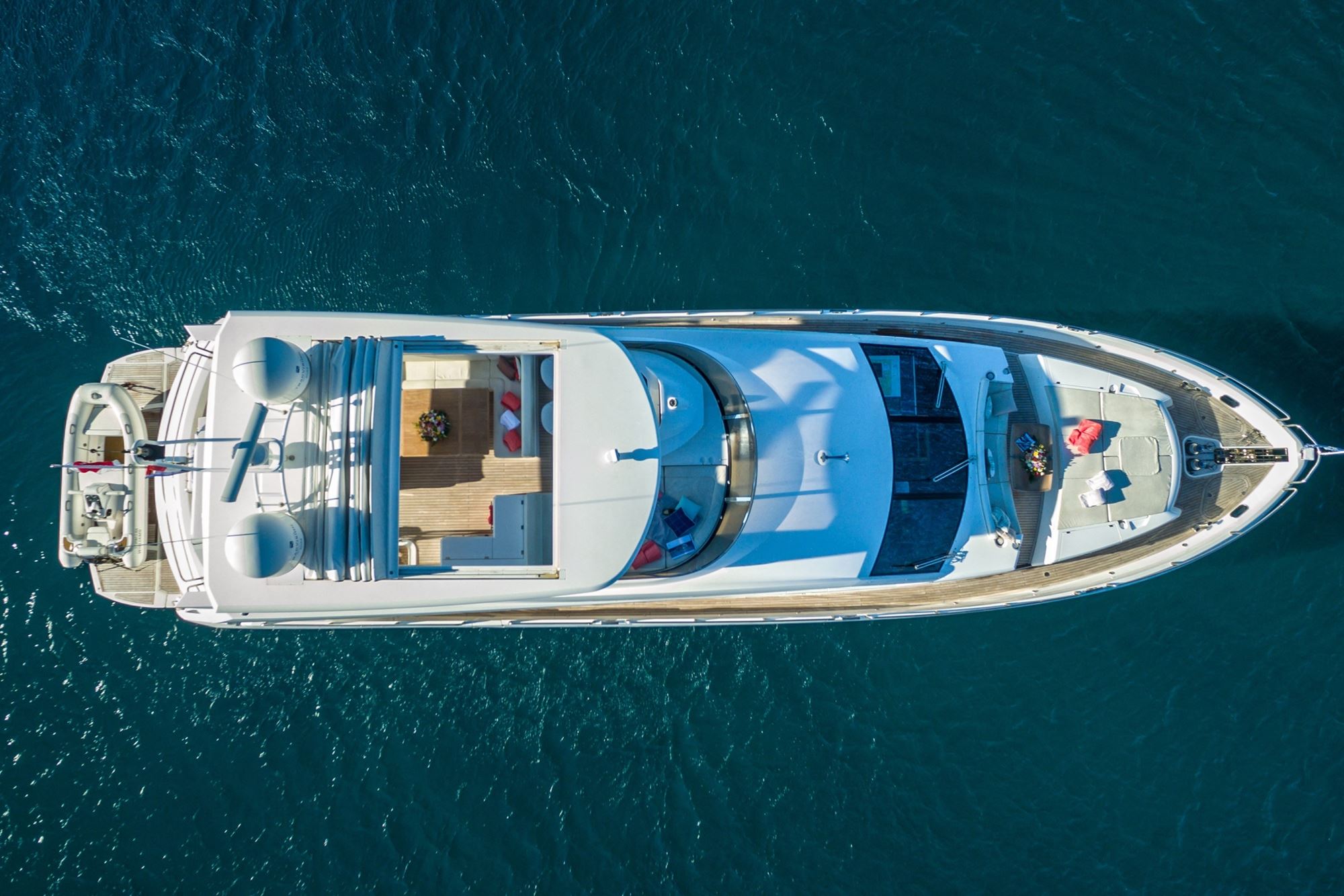 Sleeping up to eight guests in four ensuite cabins, Spirit of the Sea also boasts a spacious and luxurious saloon with separate dining area. In addition, guests can take advantage of a generous flybridge with retractable sun shade and three additional dining and lounging areas on the main deck aft and on the bow.