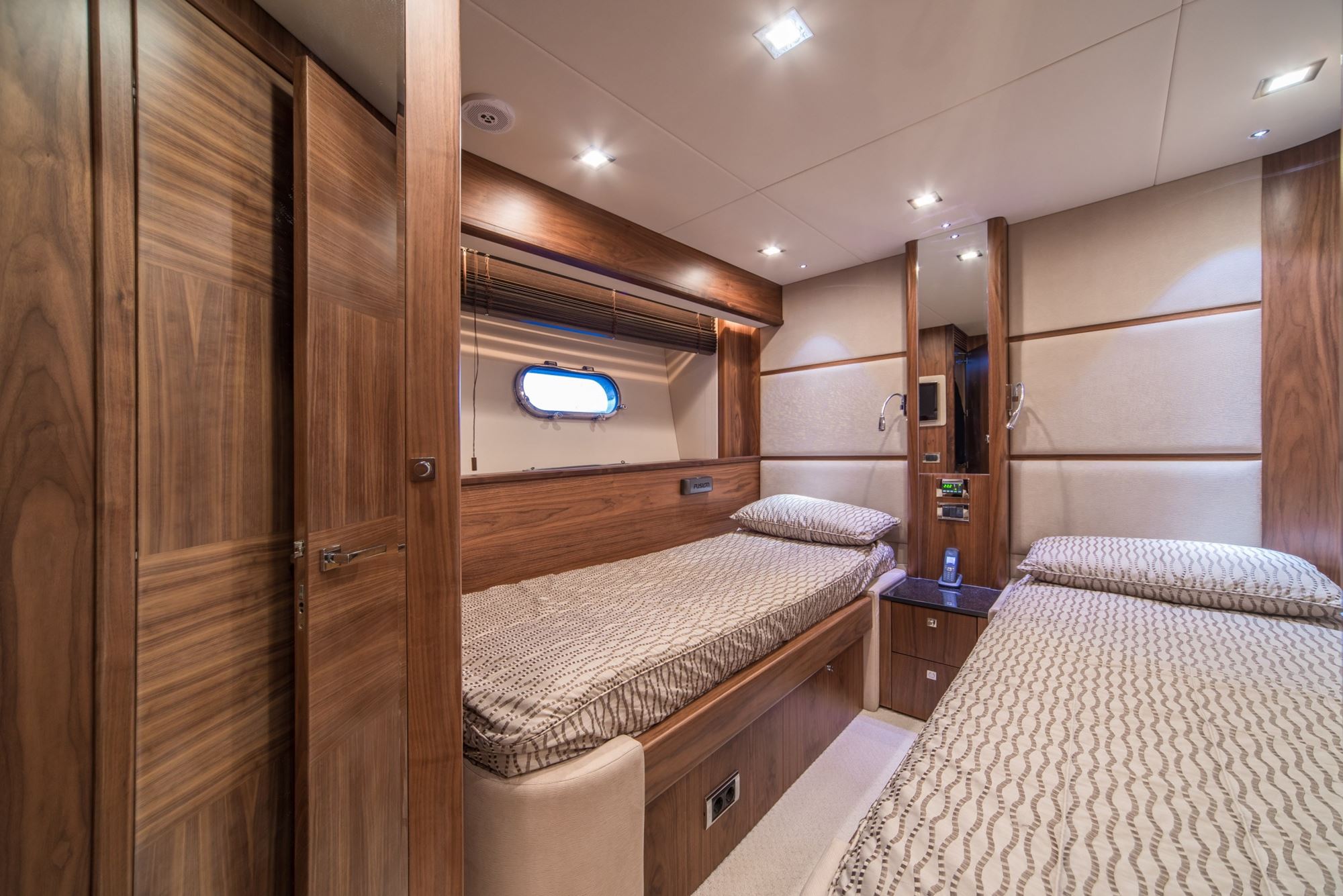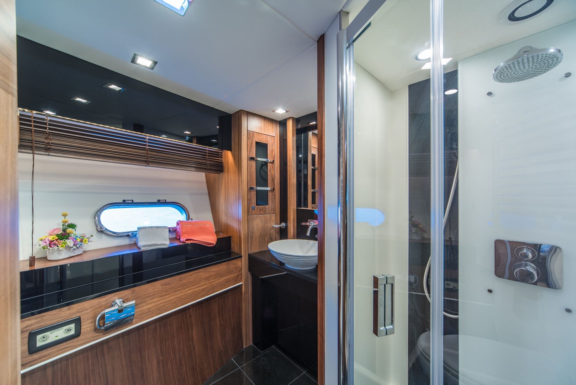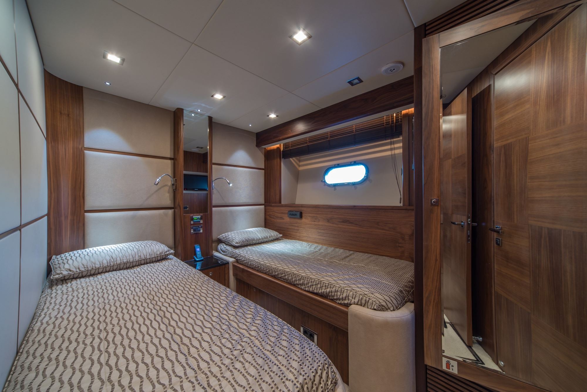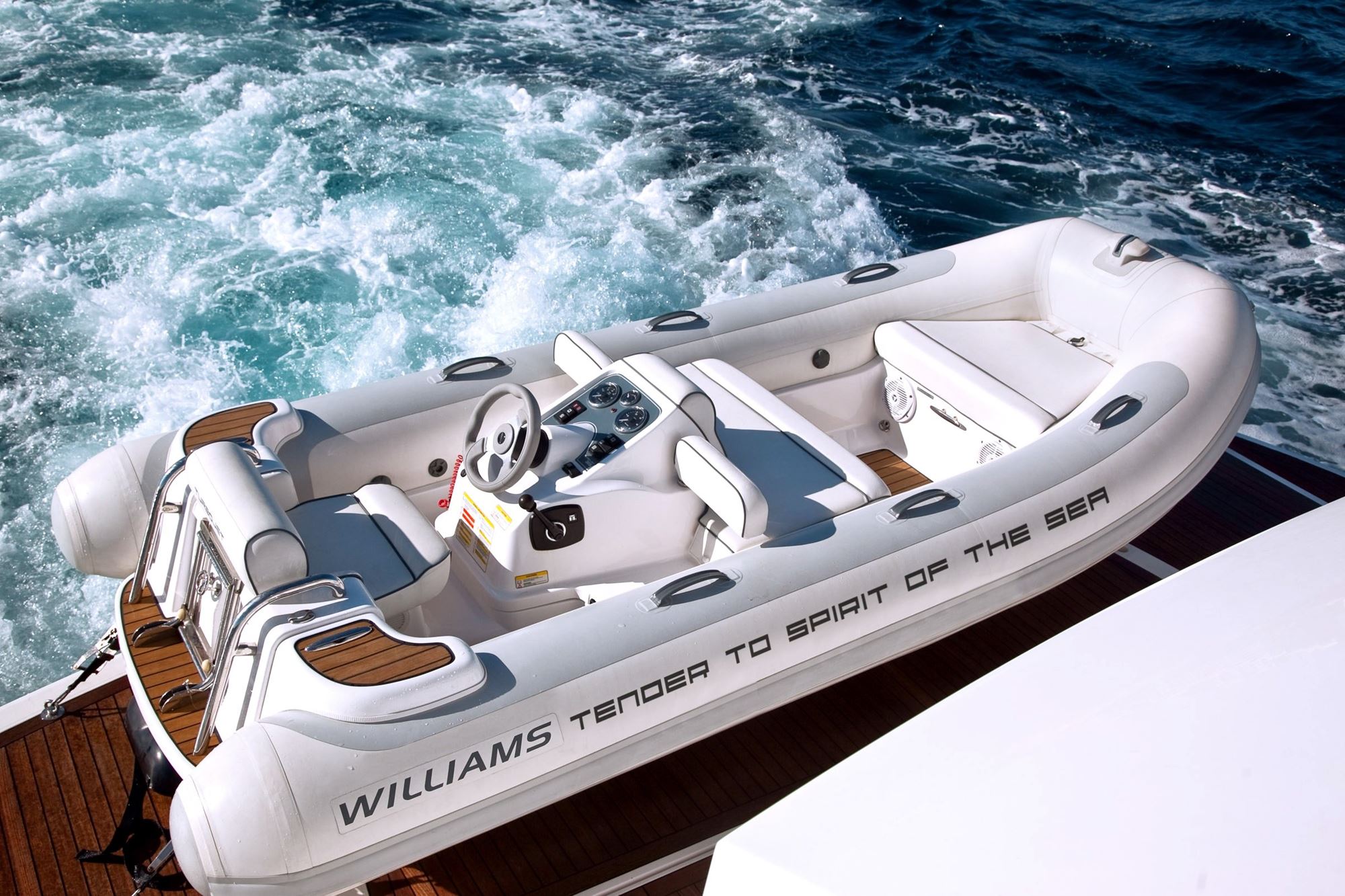 Sleeping up to eight guests in four ensuite cabins, Spirit of the Sea also boasts a spacious and luxurious saloon with separate dining area. In addition, guests can take advantage of a generous flybridge with retractable sun shade and three additional dining and lounging areas on the main deck aft and on the bow.