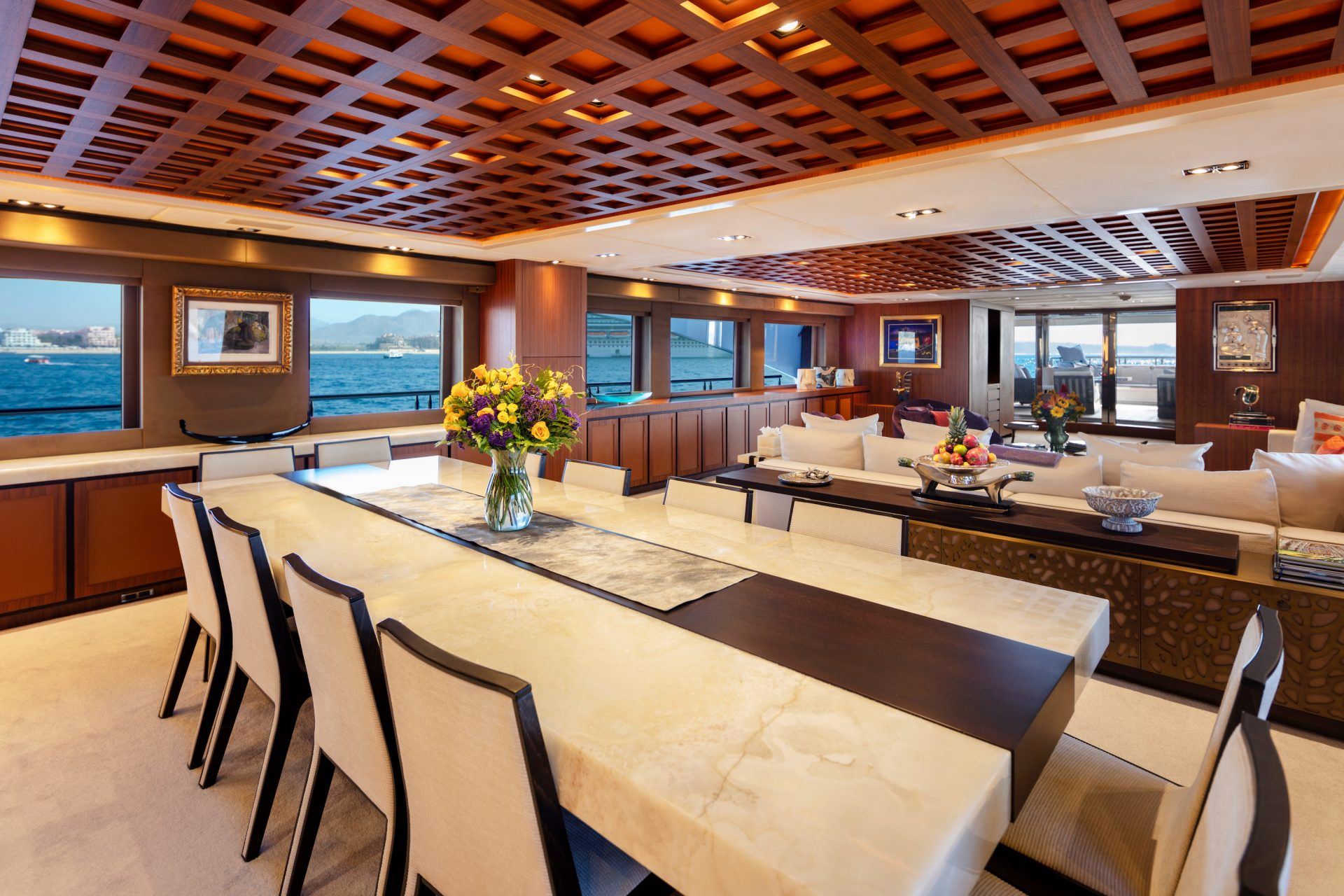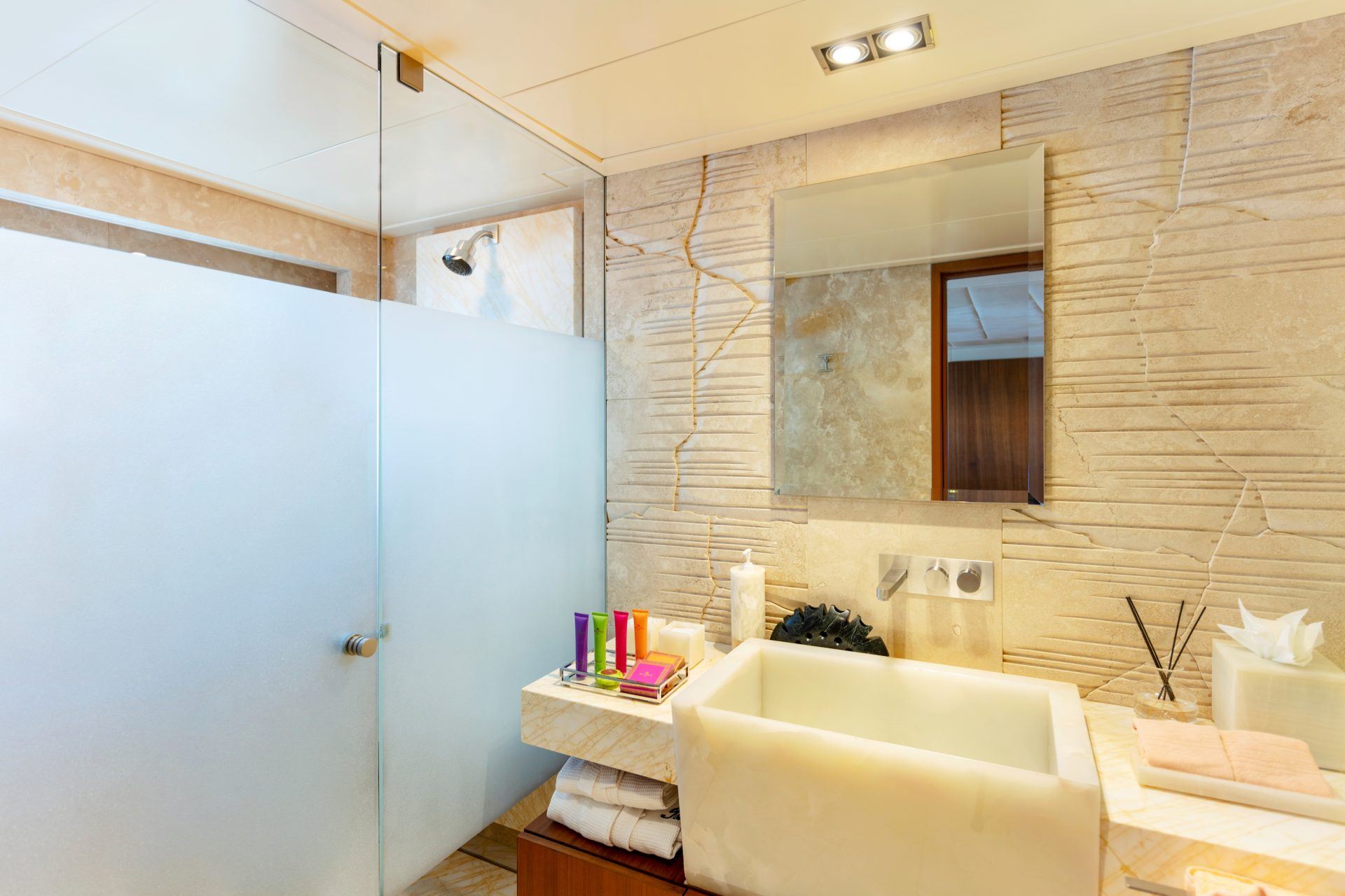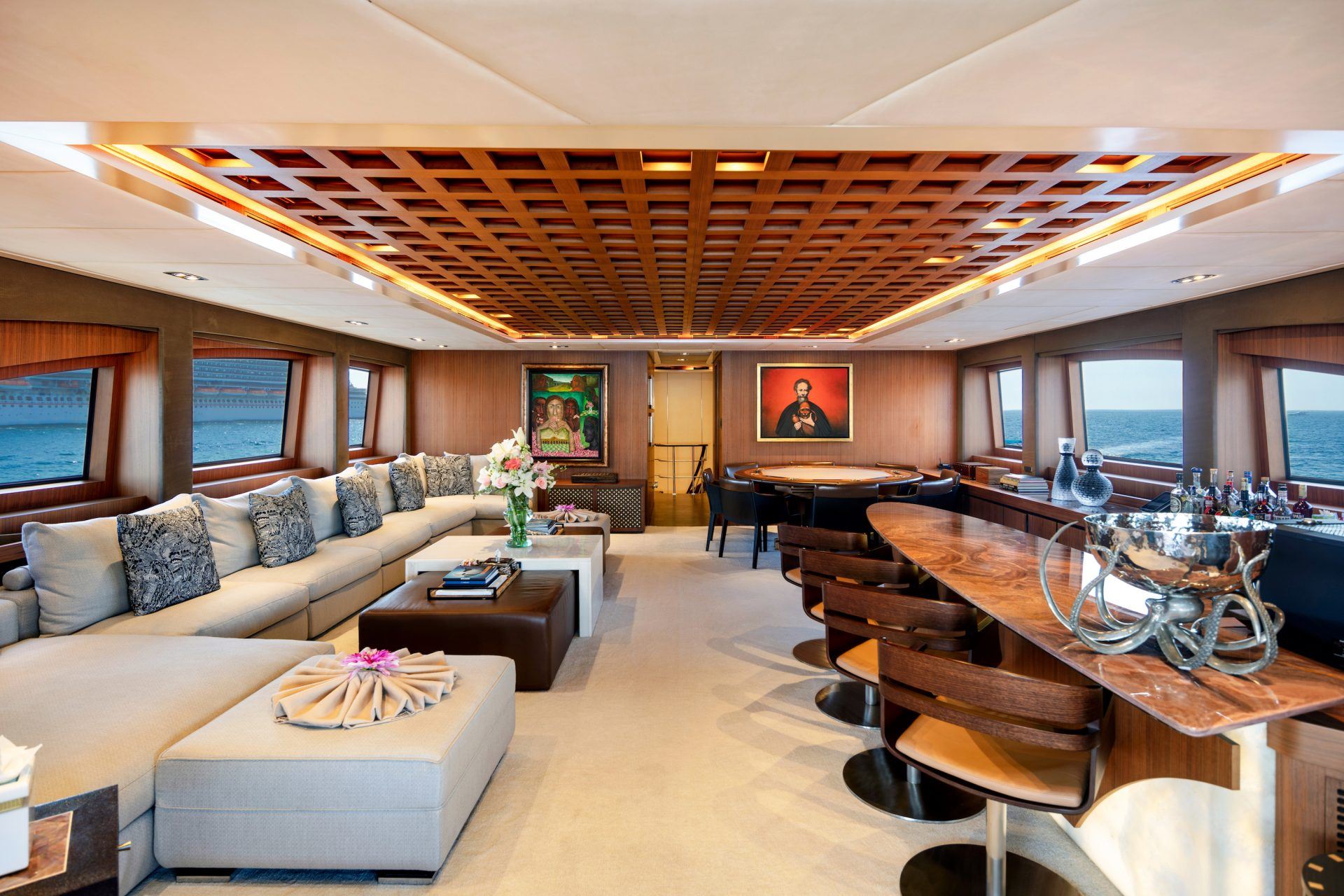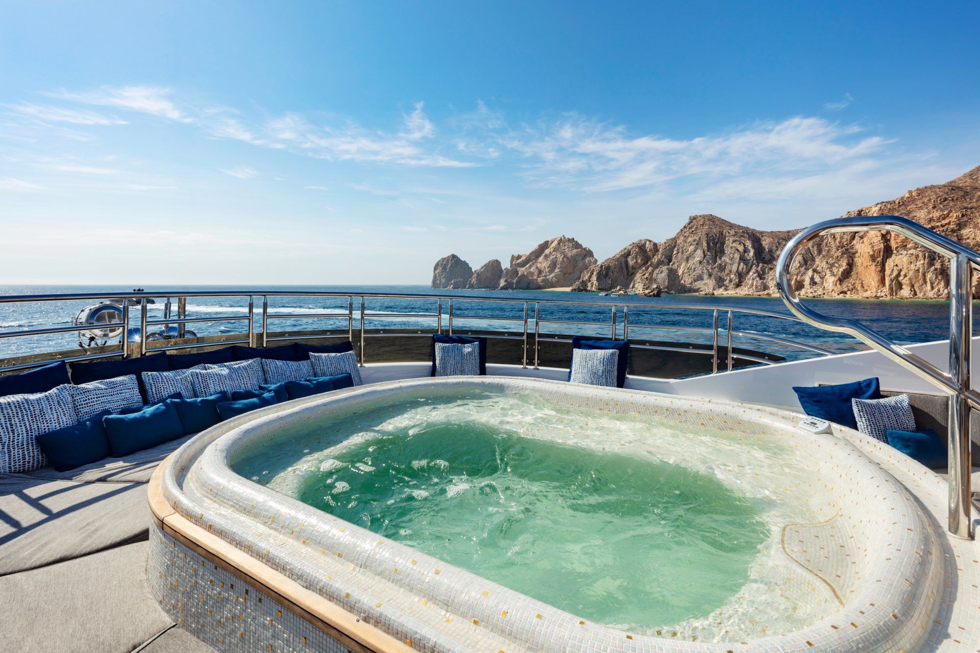 Her innovative design utilises every inch of deck to provide guests with a range of locations to sunbathe, socialise and dine. She also offers a wide range of amenities that can keep guests entertained, with those who are conscious about their health able to enjoy the gym facilities, followed by a soak in the bubbles of the onboard jacuzzi.