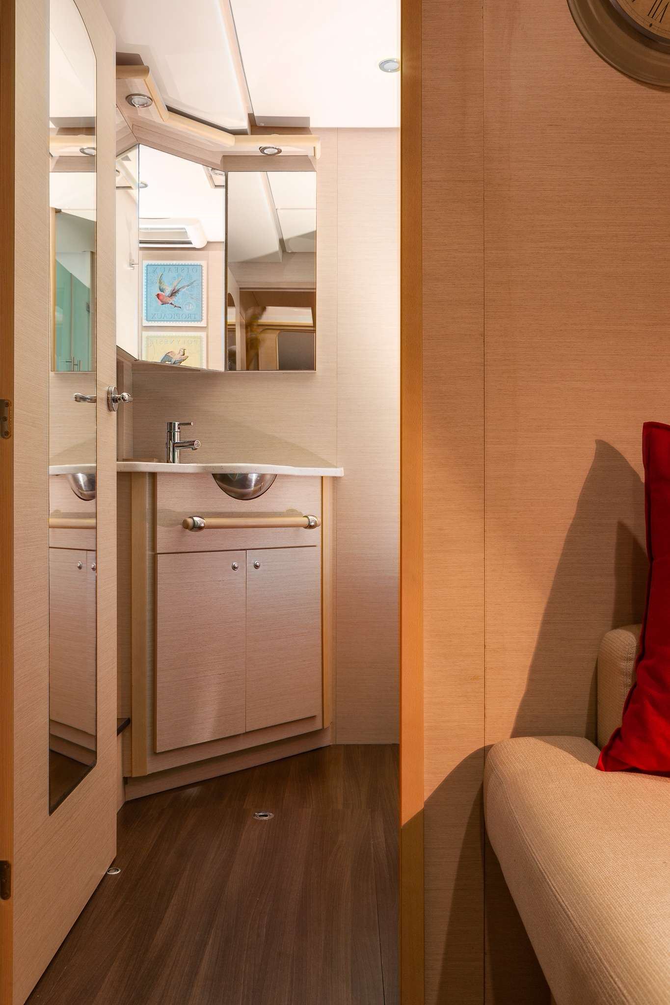 Inside, TWIN PRIDE is light, airy and well appointed for her charter guests to enjoy every aspect of living on board. The saloon comprises Chef’s galley on the port side, and a large lounge/dining area to starboard, with large windows for unobstructed views from every angle.