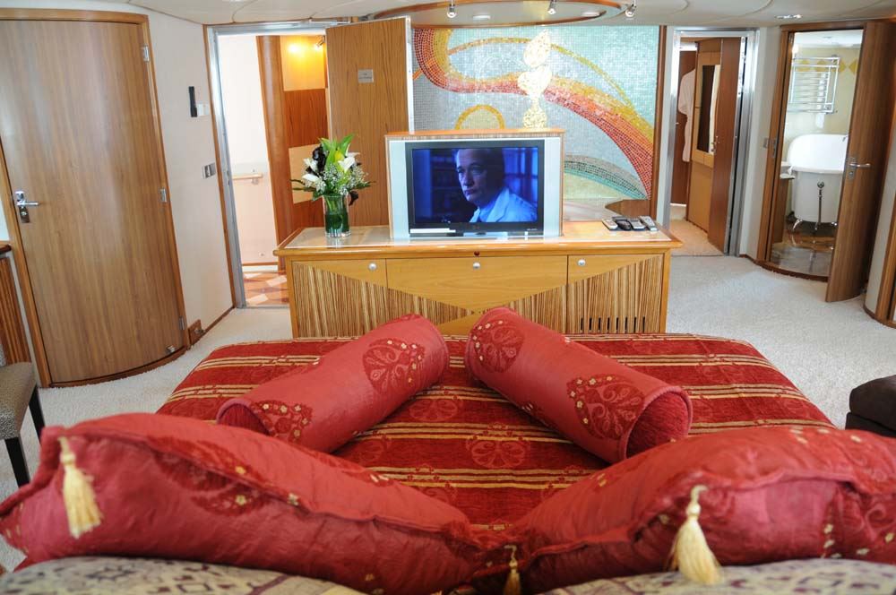 SHERAKHAN is one of the most impressive superyachts available for charter. Her luxurious interior, décor and layout combine perfectly to give a feeling of grandeur and comfort. The added extras such as the glass bottom Jacuzzi and the themed cabins make this yacht one of the very best available for charter. She is available in the more traditional cruising area of the Mediterranean and Caribbean Seas, but she can also take you further afield for a once in a lifetime adventure to places like Patagonia, Antarctica, French Polynesia, Asia, and Panama.