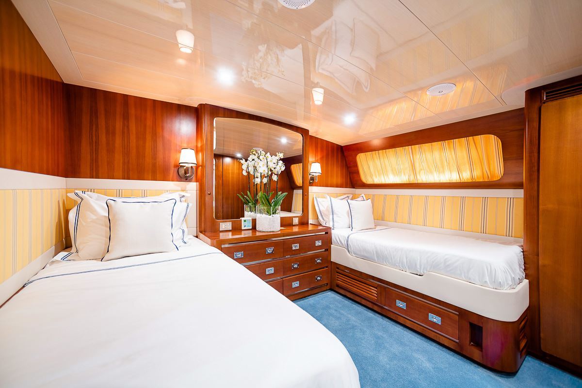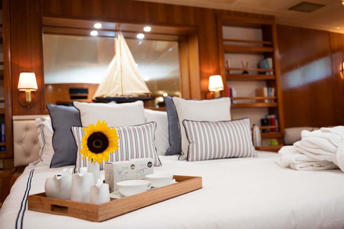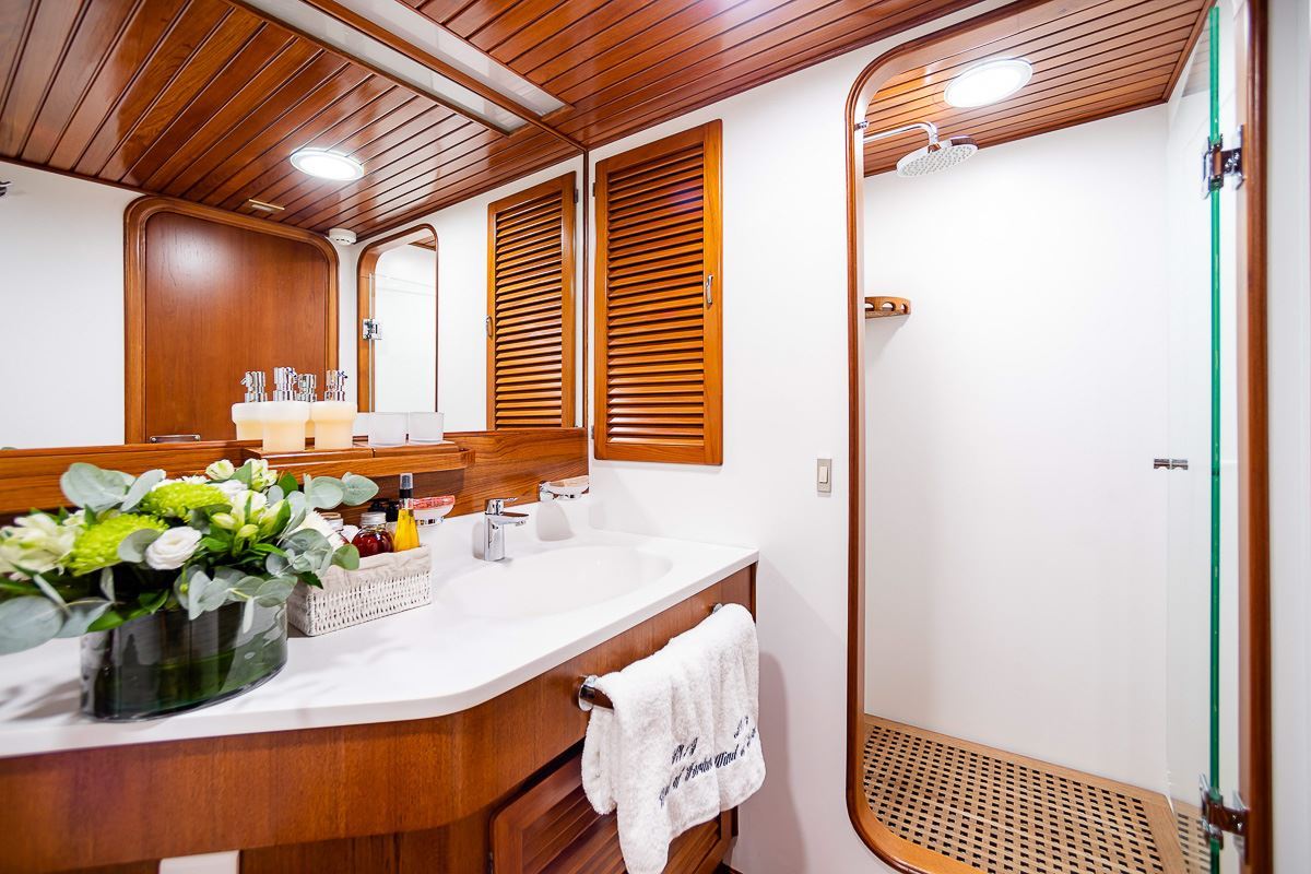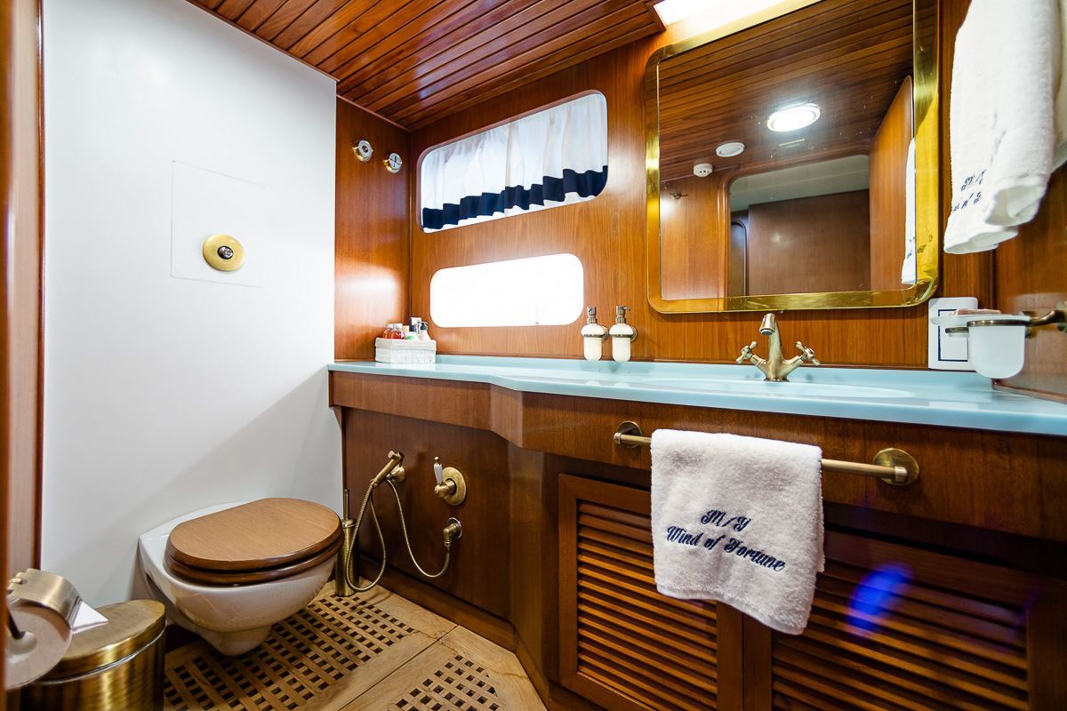 Wind of Fortune offers guest accommodation for up to 12 guests in 7 suites comprising a master suite, one VIP cabin and five twin cabins. She is also capable of carrying up to 12 crew onboard to ensure a relaxed luxury yacht charter experience.