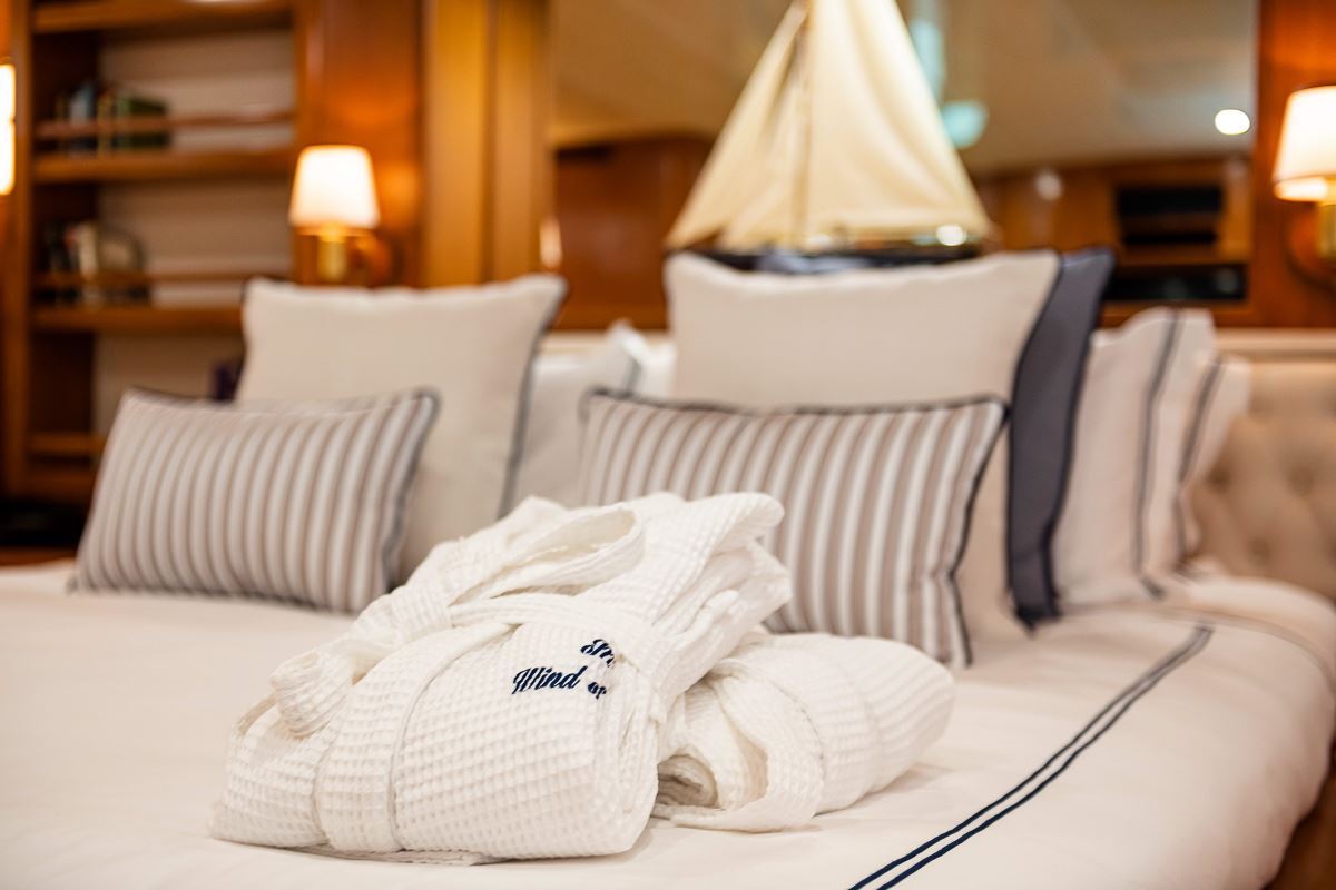 Wind of Fortune benefits from some excellent features to improve your charter including Wi-Fi connectivity, allowing you to stay connected at all times, should you wish. Guests will experience complete comfort while chartering thanks to air conditioning.
