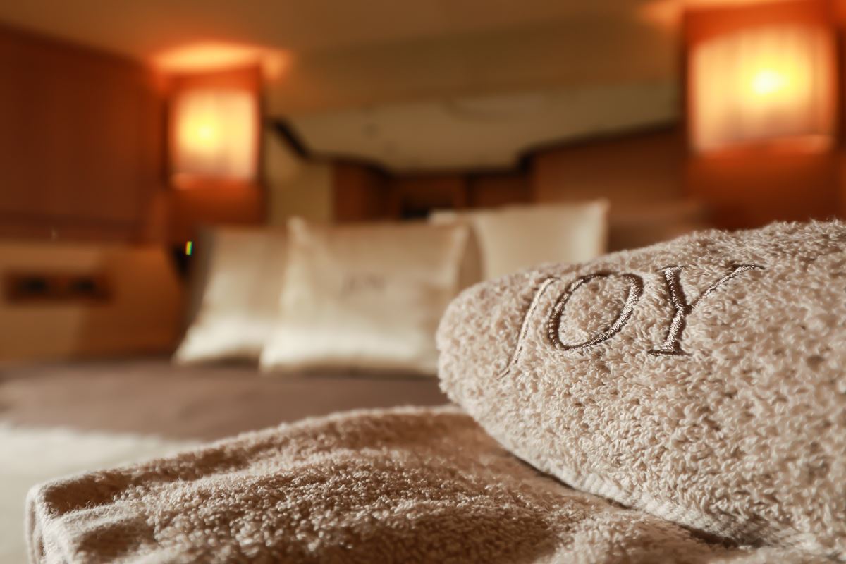 Joy benefits from some excellent features to improve your charter, particularly Wi-Fi connectivity, allowing you to stay connected at all times, should you wish. You can stay comfortable on board whatever the weather, with air conditioning during your charter.