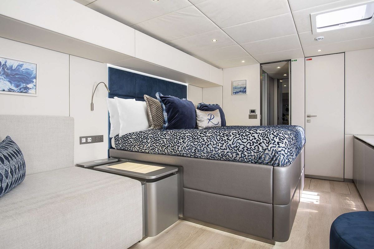 Built in 2022, Relentless II offers guest accommodation for up to 8 guests in 4 suites comprising a master suite, two double cabins and one twin cabin. There are 5 beds in total, including 3 doubles and 2 singles. She is also capable of carrying up to 4 crew onboard to ensure a relaxed luxury yacht charter experience.