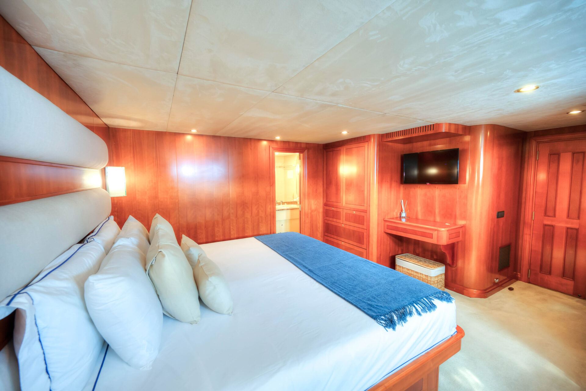 The deck areas provide multiple al fresco dining and entertaining spaces, as well as comfortable seating and sunpads on the flybridge to enjoy magical ocean views as you cruise. With air-conditioning and wifi throughout the yacht, comfort and connectivity is ensured for the duration of every charter.