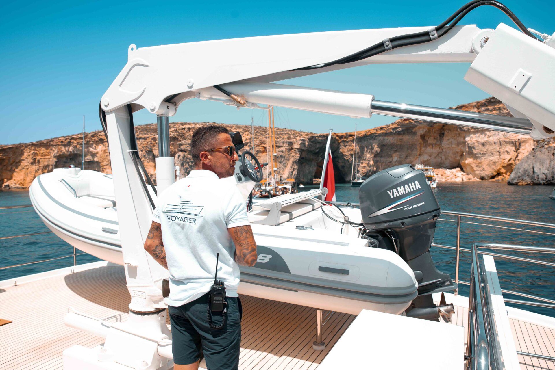 Additionally, Voyager offers an exhilarating array of water toys and equipment including a 6m RIB for shoreside excursions capable of carrying up to eight passengers. The list of toys includes a Seabob, Seadoo Spark jet ski, SUPS, a fliteboard, wakeboard, water skis and diving equipment, to make the most of the inviting azure waters of the Mediterranean.