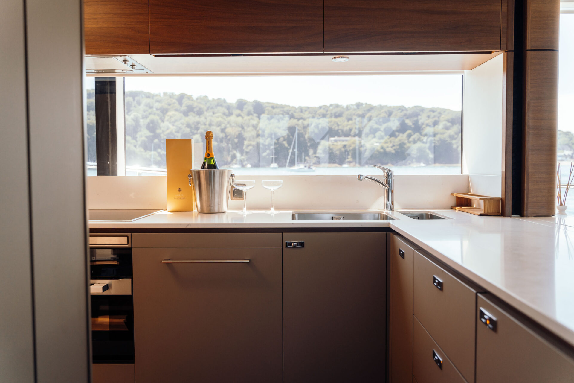 Capability meets comfort with Chase’s carefully thought-out amenities: tropical-spec 270,000 BTU air-conditioning, dual 27 kW Onan generators, a 190 litre-per-hour water-maker, 4G internet and a Miele-equipped galley ensure autonomy and indulgence wherever you roam, plus ship-wide audio to suit every mood on board.