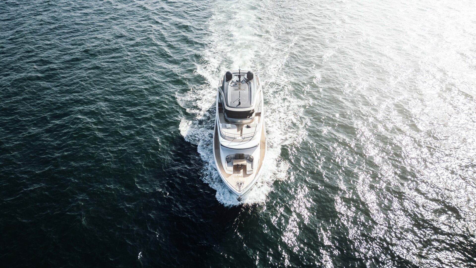 The outside is welcomed in via the large windows which flow either side of the entire length of the upgraded main deck, encasing the saloon, galley and dining area. The use of natural lighting, innovative design and exquisite materials are combined here to create an idyllic space in which to spend your time. A full-beam sky-lounge flows seamlessly into the extended ‘Superfly’ deck, while a main-deck owner’s suite with private fore-deck terrace delivers the penthouse-at-sea ambience normally found on much larger yachts.