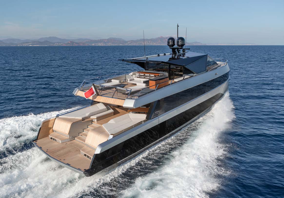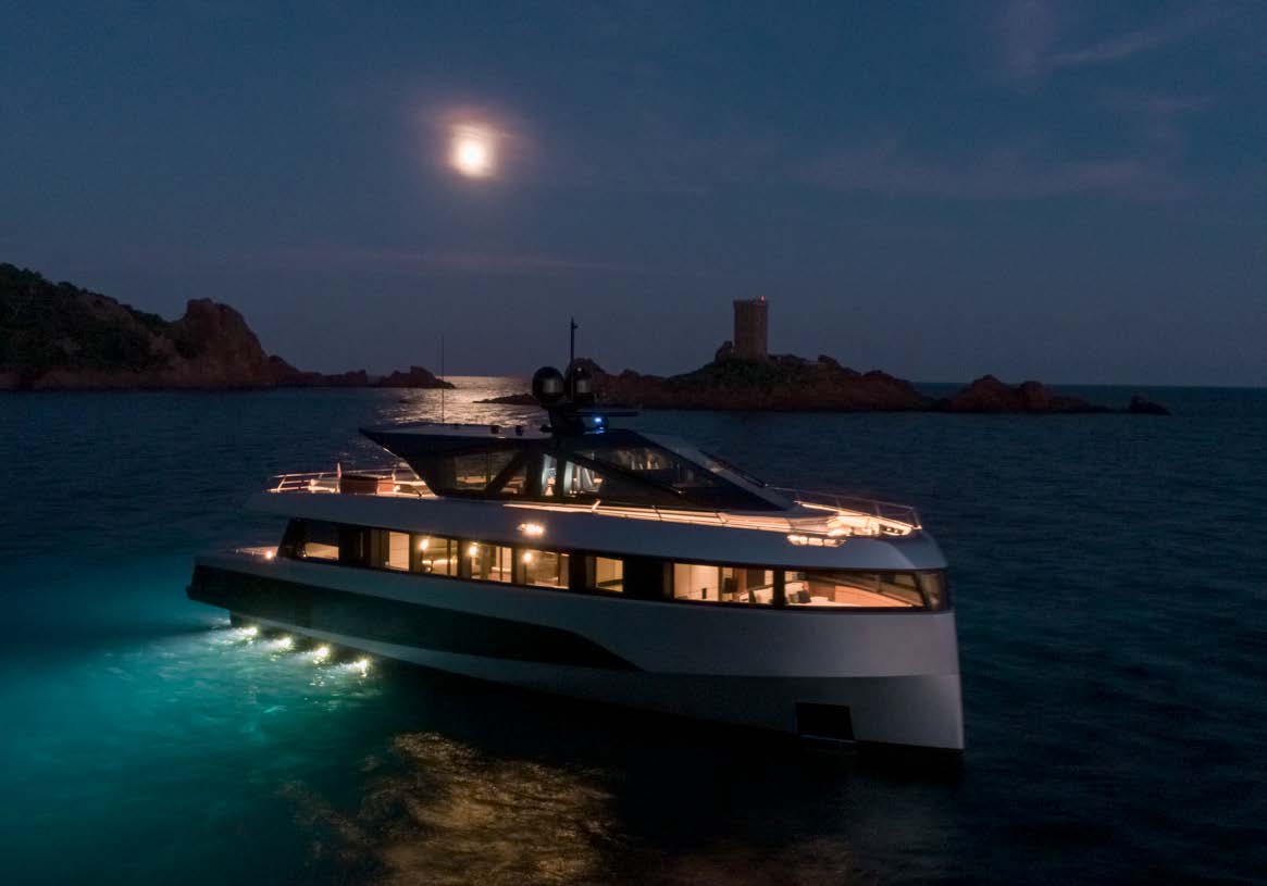 Wally’s futuristic-looking 27-meter (88’ 9”) wallywhy200 is a cool “space” ship in more ways than one. Providing a ground-breaking owner’s suitein the bow and delivering up to 50- more living space than traditional yachts of its length but without making the speed concessions ofa displacement yacht, it offers a solution you’ll want to get on board with.